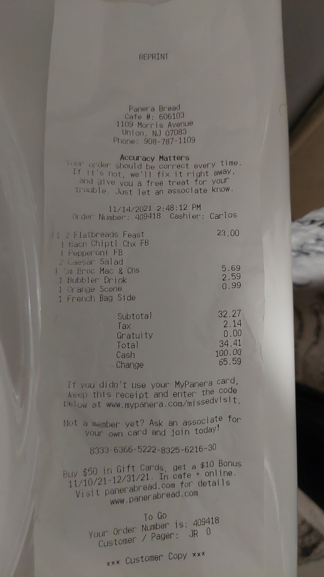 Read moreUnfortunately, each time we order from here, they are always out of key ingredients for menu listings -- IF the options exist at all, this includes tomatoes, spinach, cheeses, breads, lettuces, corn salsa (for Baja Chxn Salad), and more. No discount is applied to the meal cost for a consumer who did not opt out of an ingredient, but, could not get it because not in stock. And you cannot move forward with the order UNLESS you 'remove' the out of stock ingredient. A catch 22 on the app, because they don't acknowledge it's not by choice. The wait for your meal even if ordered online way ahead has run us anywhere from 40+ min (yesterday) to as long as over an hour (last visit) once arriving onsite to the store. Items are missing when turned over in the stapled bag. We stop through here on our way home from visits to the Benedictine Motherhouse monthly. Last month's visit, we were almost on the Garden State Parkway before realizing a multiple sandwiches, etc were missing (but, we were exasperated and just wanted to get back on the road after waiting over an hour to get our food). My niece who was still waiting there (now about 90min) for her meal, updated the management who offered to refund us for the meal/missing foods. She was assured it would be applied. It was never refunded. After three bad experiences after three different months, we will not be going back. We still tipped, we remained patient and polite, even tried to be understanding, but, we just cannot go there anymore. I always hate writing non-positive reviews. But, while there each time, I realize we are not the only ones experiencing this. And I am hoping this gets the store what/who it needs to help it turn around and...