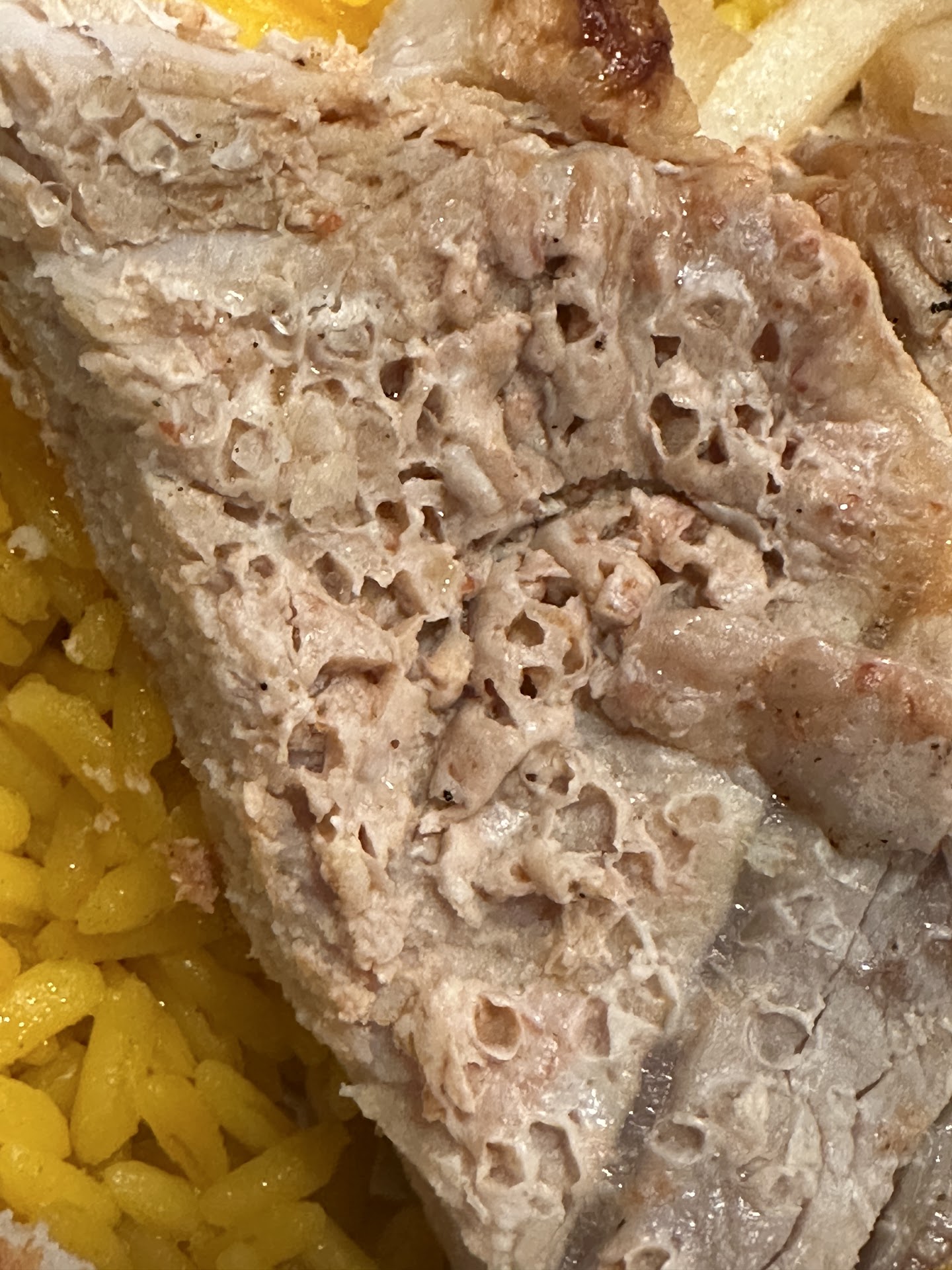 The picanha was a complete letdown — it was a low quality cut (choice or below) but lacked any sear or color...the meat could have just been microwaved to cook it. The sausage was undercooked and actually raw on the inside, which is both dangerous and unacceptable. The pork chop? It was simply GROSS.