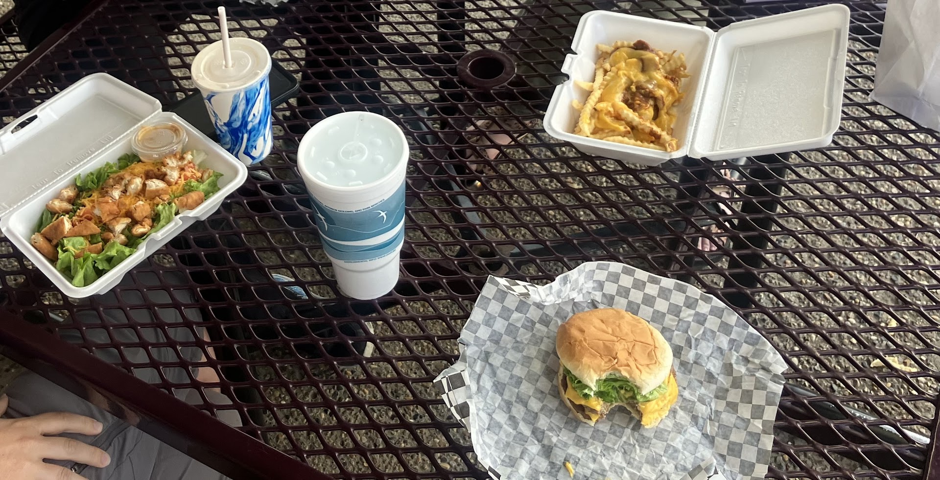 May seem promising, but it's mediocre fare. If you're looking for something special in this little burger stand, you are in for a disappointing surprise! I stopped to get a cheeseburger and side. I wanted to try the fried cauliflower, something I've never seen at such a place. No luck. They accept cash or check only, and I only had enough for the burger. BTW, it took 5 minutes before they took my order. They just kind of ignored me until they were ready. I expected it to take 10 minutes. 25 minutes later, I get my food. Little did I know the place was not as small as I had thought, and there was an entire inside area with numerous tables, almost all of which were occupied! Well, that explained the wait, but what in the heck is a restaurant that serves so many people doing not accepting credit and debit cards? Finally, the burger was okay. It tasted like a homemade burger made from a defrosted pre-formed patty cooked on a stove, not grilled. It was slapped together with a squirt of mayo here, a squirt of ketchup there, veggies tossed on haphazardly. I had to take it apart and adjust everything before eating. If you are passing through, try the Casey's or...