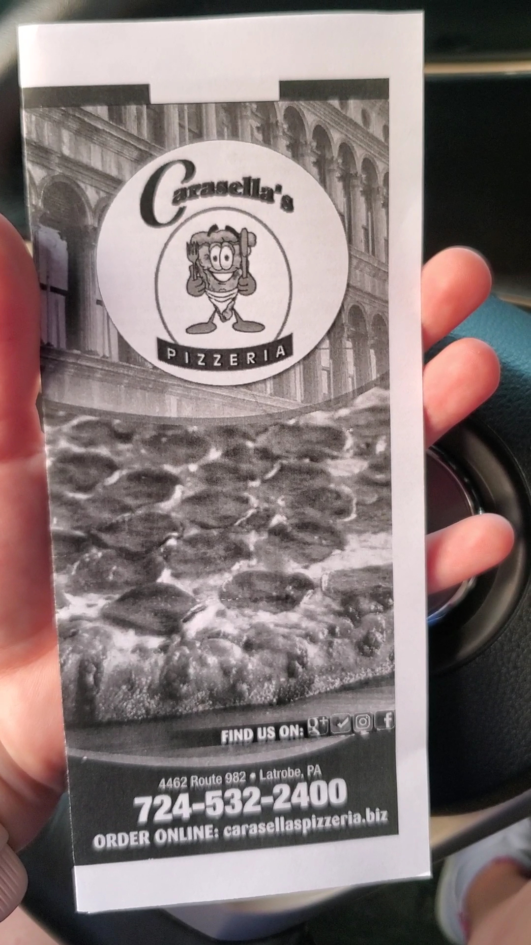 Read moreJust started ordering pizza from here it's good, but they delivered a burnt one and I had to wait another hour for a fresh one before my family could eat. They answer the phone hello instead of hello this is carasella's pizza very unprofessional. Also long hold times. These people got a good product I grew up in Pittsburgh's little Italy along with being 100% Italian I know good pizza when I taste it. Please a little more professionalism and attention to detail and this place...