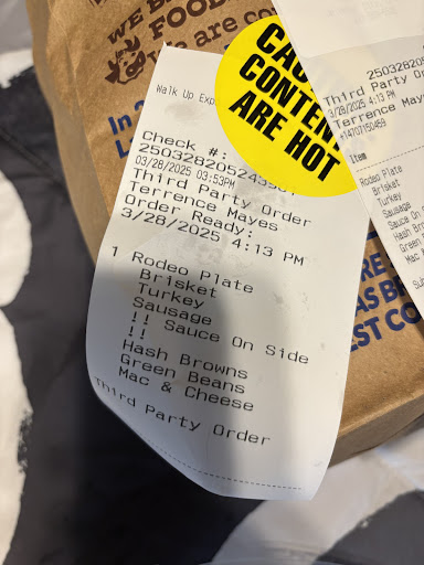 Read moreY'all really need to work on your drive through problems. You obviously have a speaker problem as you can't get the order straight. We constantly have to repeat ourselves. Then we're told it'll be 15 minutes wait. No problem. We finally got our order around 30 minutes later. When you tell someone to park out front and there is NO parking left out front to wait, and NONE designated for drive through, it becomes a joke watching the people bring out orders to people when they have NO clue who they're looking for. Watched a guy spend 5 minutes walking all over trying to give out an order. He must have asked the same people more than once if it was their order, going back in and coming back out just to ask the same people. Here's a couple suggestions for you; write down the color of the car, or maybe what kind of car. Here's an even better one; how about ask for a NAME for the order. Wow, problem solved! I understand you get busy, but be a problem solver, not part of the problem. The lady next to us said she wouldn't be back because of the fiasco. As a footnote, we ordered 8 carne guisada and got three bean and cheese instead of all carne guisada. Not sure how that one can get messed up. Nowhere did bean and cheese ever get mentioned by us. I spent a premium price for tacos i didnt get. No hot sauce or bbq sauce either. Thanks so much. I wont ever order a brisket taco again after that fat filled one you gave me on another order. The dog was happy...