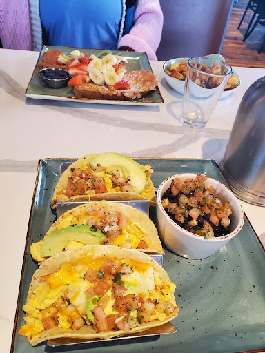 Ā Ā Ā Read moreGreat options without being overwhelming. I had the breakfast tacos with chicken instead if chorizo, and black beans for the side dish. Every bite was delicious and I liked that the tacos were served on a little rack that keeps them from getting soggy on the plate! My granddaughter had banana pancakes and breakfast potatoes. Soooo good. The coffee was hot and strong just like I like it. I also had a healthy drink with turmeric and ginger that was surprisingly tasty. Usually I just hold my nose and down a ginger shot. The best part was our server, whose name is ROSE! She was welcoming and helpful when I couldn't decide what to order. Very lovely person, attentive but not obtrusive. The place gets crowded on Saturday morning. We arrived around 9:30 and the place was packed but starting to thin out. Great experience. The bill was $54 with a 20% tip, but that included the ginger turmeric beverage, regular coffee and an...