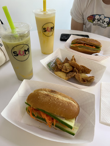 i’m going to start off with the star of this review, THE BANH MI ! if you come here to try the boba teas, i highly recommend you to at least order the banh mi as well. it’s crispy, authentic, and it’s well perfectly flavored (not dry at all). today i got the matcha latte with oat milk & egg pudding and my boyfriend got the mango snowy. both are very delish. but next time i will get my matcha latte less sweet. so if you don’t like overly sweet, i would recommend the same for you as a change. the interior is adorably decorated & the staff are so super sweet! they were caring from the time we walked in to when we had to leave. and when one of the girls brought our food out, she went out of her way to throw away our wrappers,, she didn’t have to but oh my what a gem for that! thank you sum tea! we will be back for the drinks & the banh mi...