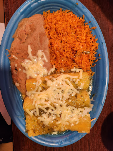 The food was quite abominable. It was not in the same ballpark as average Mexican fare. It wasn't exactly cheap, either. The enchiladas verdes were lacking in meat, and had half a whole red tomato within. I do not know why it was in there, as it was not mentioned in the ingredients and only found in 2 of the 3 enchiladas. The meat was bland and verging on questionable edibility. The verde sauce was just wet and green. It didn't have that usual tanginess associated with the "standard" green tomatillo sauce. Beans were runny like soup. I've never had runny, refried beans. Rice was fine, I guess.