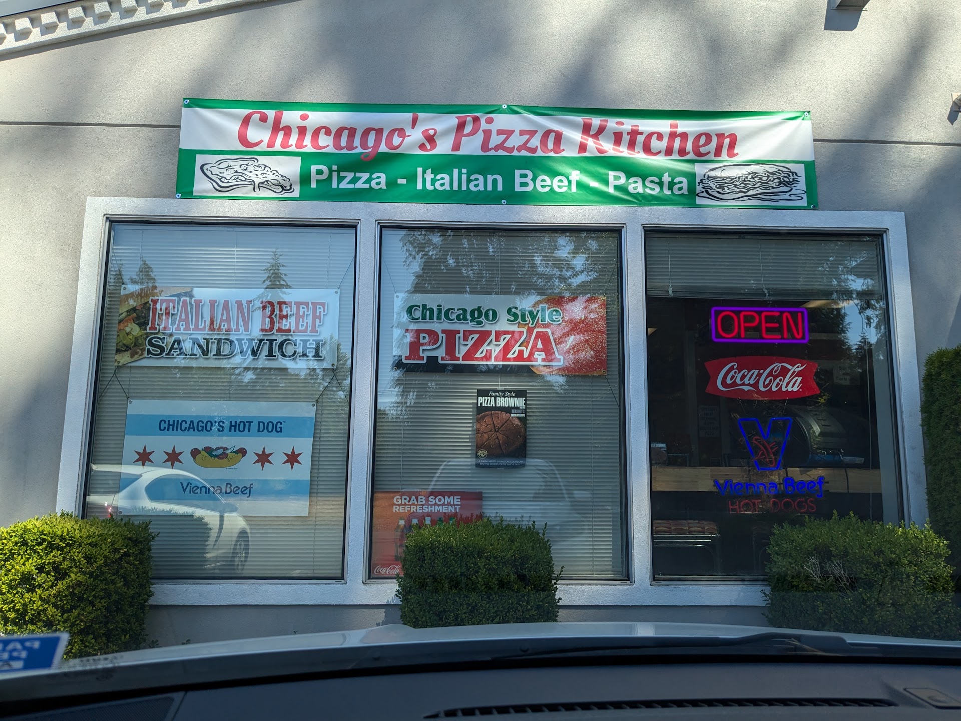Getting to the place itself was a bit confusing since it was tucked away behind other buildings but we eventually figured it out. As soon as we stepped in, we were greeted by the owners and they were sooo sweet and so accommodating that it felt like we went to a friend's house for dinner. Hearing about their dreams of having a pizza shop that sold a true deep dish pizza was so heartfelt that it made the pizza taste better. You could tell the owners put a lot of thought and love into the pizza. The place was also clean, had some chicago charm to it.