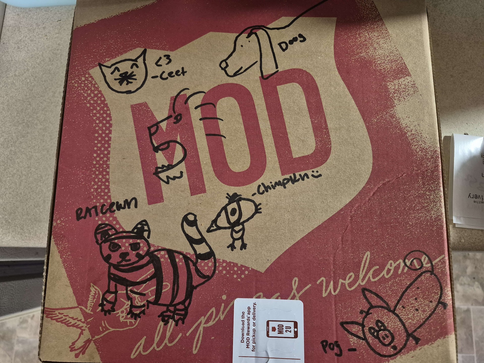 Read moreFood is always yummy. I always get a cauliflower crust and it is so good. (Granted I haven't had regular pizza in about a year) I love how everyone can get exactly what they want (or don't want) on their pizza. The app is easy to navigate and it saves prior orders so you don't have to remember what was on the "best pizza ever" that you came up with last time. đ¤đź service when we went to pick up pizza was not bad, but I would have liked it if the cashier at least said someone to me like, "I'll be right with you". They advertise that you go right in to pick up to-go order. We did that and I didn't mind the wait, I just wish someone/anyone that was working had acknowledged our presence. These were younger "kids"and I know expectations are different, but still. Overall, I did not let that stand in the way of the delicious food that we always get from MOD, it didn't affect my five-star rating-who knows, someone might have been having a bad day. â¤ď¸ (Why are you still reading? Go...