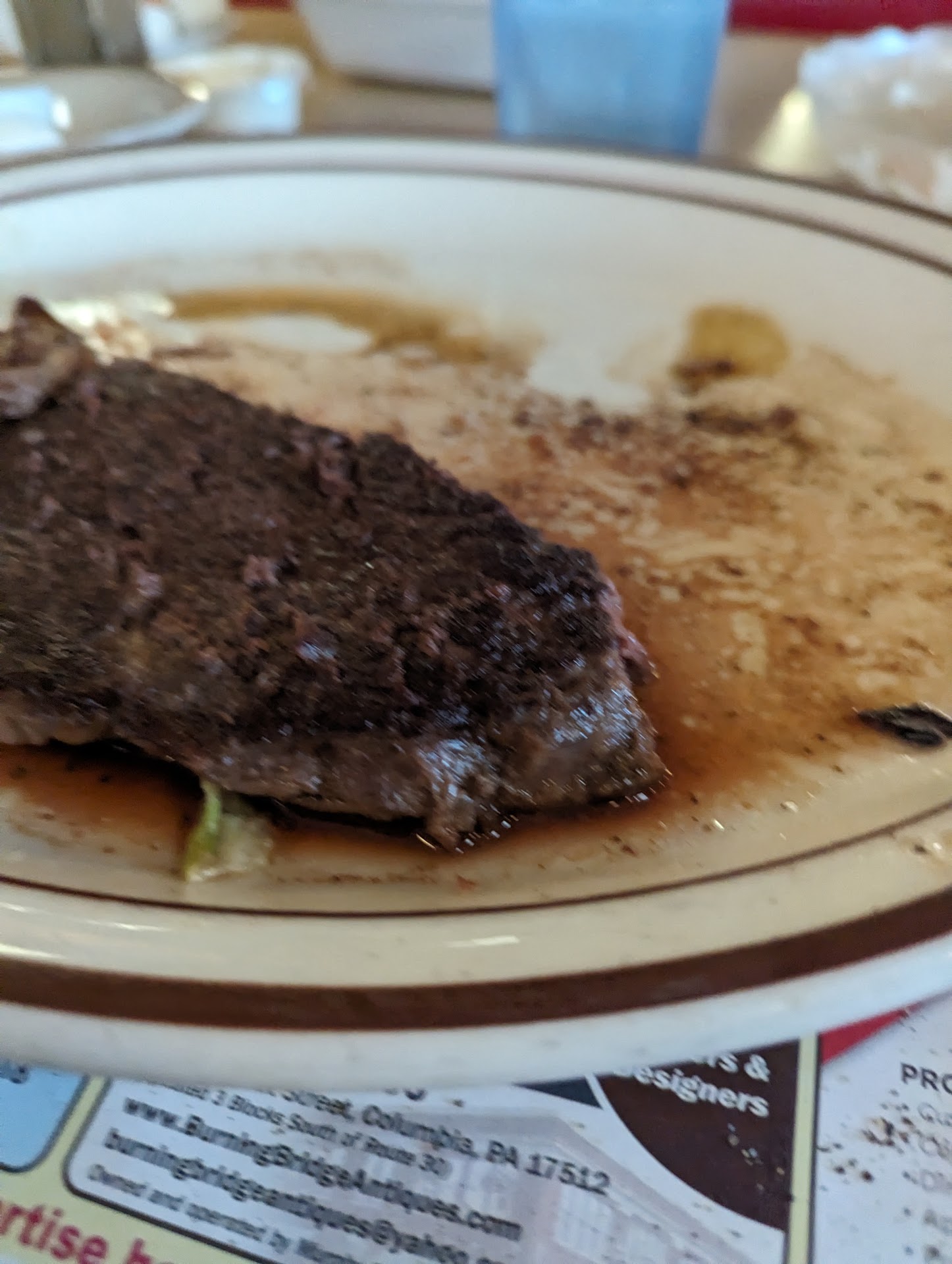 I have pondered this review for days. Considering three meals in the restaurant and one to go has led to this review. First visit was in restaurant during lunch . I ordered the Balboa sandwich which was identified as a beef sandwich in a garlic roll. It came plain, so I ordered some au jus to dip it in. It has plenty of beef in it but it had very little flavor. The au jus had little flavor as well. It could be better with some horseradish mayo and or some lettuce. The fries accompanying the sandwich were pretty good. The next visit in restaurant was breakfast and I ordered the biscuits and gravy with hash brown potatoes. The biscuits were not homemade biscuits and the gravy was quite watery. The hash brown potatoes were overcooked. The next order was to go and it was for two fish plates. One fish was fried and the other was broiled. Both were average for a diner. The next, which actually was the biggest disappointment , was my order of the ribeye steak. The order came with a salad and the salad was crisp and fresh. The steak came and it looked ok at first glance but it was quite thin. Upon trying to cut and eat it I was faced with a tough steak containing much connective tissue or gristle. I made my concerns known to the waitress and was offered something else which due to the previous experiences I declined. She asked if I wanted the baked potatoes I chose for my sides and I said yes. She brought the bill and had removed the steak , however, I was charged for two potatoes and a salad which left the value of the steak at $6. When paying my check I again informed the cashier of my dissatisfied visit. I paid the amount requested and departed the restaurant. Unfortunately this would not be a recommended eatery. The decor is great if you know who James Stewart, Elizabeth Taylor and John Wayne were. It is a little over decorated for the season. Hope...