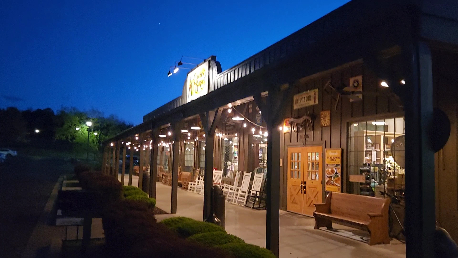 Sigh.. when I eat out, especially atban established chain restaurant I expect good service, good hot food, and good management. Well, one out of three is unacceptable. Food was downright cold and the young server was well, cold as well. Not what I expect from a Cracker Barrel restaurant. Unfortunately, for this particular location it has been steadily declining over the past few years. First, we ordered our drinks. There was a new drink on the menu, watermelon lemonade. We both decided to try it. We also asked for some corn muffins . Several minutes later the server returned with the drinks and explained it would be 15 minutes for muffins. Being a Thursday evening with a decent crowd one would expect a sufficient supply of warm muffins as this is a staple to the chain. We then both sipped our watermelon lemonade. Awful! Just plain awful. No watermelon flavor let alone lemonaid. We asked to change them to a sweet tea for my wife and unsweetened for myself. The server said nothing but took our drinks and abruptly left. When he returned with our drinks heplaced the unsweetened with a spoon infront of me and the sweet with no spoon in front of my wife. She took a sip and found hers to be unsweet. At this point we both were beginning to become annoyed. My wife ordered the meatloaf dinner with collard greens, greenbeans, and coleslaw. I ordered the southern fried chicken with okra and baby carrots. When the food finally came the meatloaf was barely warm and greens and greenbeans were just room temperature. When the server returned my wife explained the food was cold. The server said he would take care of it. He left the meal on the table and departed. He returned several minutes later with a slab of meatlof on a plate. The meatloaf was about 2/3 the size of the original which was still on the table. We expected fresh sides as well but that wasn't the case. Now her sides were ice cold but the undersized meatloaf was actually warm... not hot, warm. So, being very irritated she asked to simply have the meal removed from our bill. The server seemed irritated as well but took the two plates of meatloaf and left. About 10 minutes later the manager came to our table with a meatloaf and sides which were obviously quite hot as we could see the steam coming of the plate. He was very polite and sincerely apologized. He explained he would fix the problem. He did not charge us for the meal which was acceptable. So, all in all is was a miserable experience but the manager did his best to make it better. Again, one...