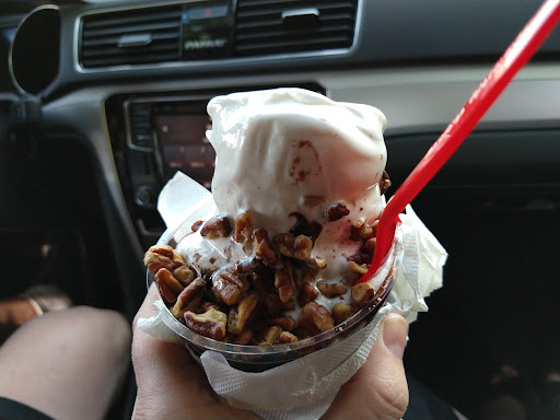 Read moreI went on a Monday at 8pm. There was a few people in front of us but not many. The young man taking our order seemed extremely confused by most of our order. My husband asked for a large chocolate soft serve with chocolate sprinkles.The employee asked him if he meant a milk shake, not understanding that that is the kind of ice cream they sell. We also ordered 2 cones a chocolate with peanuts and a vanilla with rainbow sprinkles. I asked him to put the cones into a bowl to help it travel better. These were not complicated orders. He proceeded to ask us 12 more times what we ordered and still managed to screw it up. Plus, I thought it was weird that the peanuts were whole. I've never seen an ice cream place put whole peanuts on a cone and not crushed peanuts as a topping. There were only about 6-8 peanuts on the whole thing. The entire experience was disappointing and...