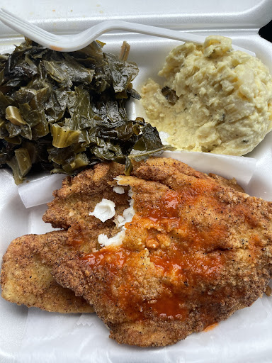 Now, let’s talk wings. These aren’t just wings—they’re full wings, tips included (yes, TIP INCLUDED). The greens were tender (you know, like how you would do it if you had the time or how granny did it). The green beans had seasoning that made them sing, and the mac and cheese was officially mom-approved (high praise in my household because she is one tough cookie). Speaking of mom, she also gave a standing ovation to the potato salad—hands down the best I’ve ever had from a store. She loved it so much she called the restaurant to speak to the Shrimp King himself.