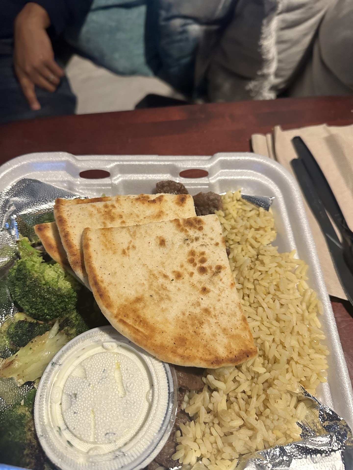 The best part about their meals was the fresh tomatoes, lettuce, rice, pita bread, rolls and olive oil dipping sauce, the cheapest things. Even their iced tea tasted very watery. The sugar packets on the table were crunchy hard sugar.