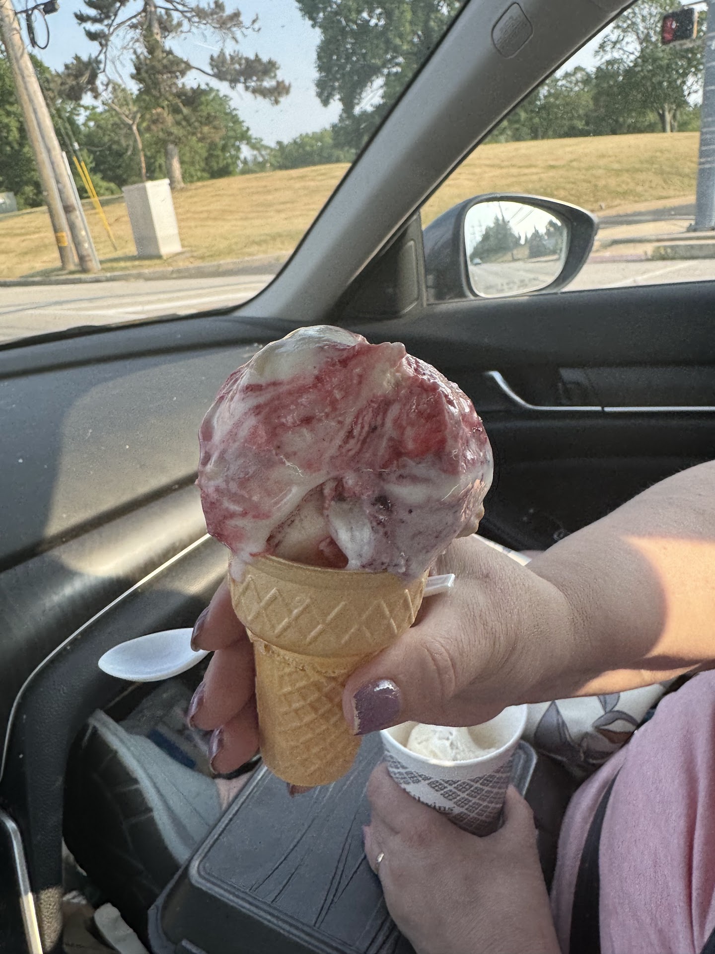 PROS : Only 3 ounces of ice cream so ice cream didn't have a chance to melt before being eaten on a 96 degree day.