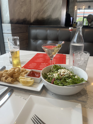 Read moreIt is probably an extra difficult to please Italian chef with 45 years of experience who want to just ‘check out’ the Italian restaurant that we haven’t been to. However he is always very fail otherwise I wouldn’t be writing this. When we arrived on Sunday at 7pm there were about 5 tables occupied. Chef noticed another table with people leaving but dishes from beginning of their dinner still not removed from the table still. So we went along and ordered beer and dirty martini. Martini came but beer didn’t. Waitress ran to bring it. The water was delivered but no ice. She brought it after I asked. We asked for the bread and dipping oil and you’ll see in a picture…we had a good laugh. Bread was never toasted or crisp and oil we could bath in with nothing in it to make it ‘dipping’… Our calamari were great as arugula salad but as soon as we started eating it chef’s chicken with vodka sauce pasta came. He sent it back to the warmer and asked staff if they heard of course timing and they said yes. However… So we enjoyed out appetizers and drinks… Waiter asked if it is time for our Mail course and it was delivered. My seafood with scampi…sauce was watery and linguini was 5 min late from being al dente. And there were hair! And I see from other reviews it is common practice here. Yuck! For the price they charge…WOW! Chef’s vodka pasta was good but chicken! OMG! How can you screw the chicken nowadays to make it up chewable??? It was. Awful! Presentation was good thought with burrata on top. Profiterole desert was great! Coffee was strong and good. So for $140 we spent before tips we could have more tasteful food…in many places. Plus making Italian restaurant a sport bar…common! We know we are in USA so name it Italian American…then overcooked pasta wouldn’t be so offensive! Also when we left we saw the lady at pizza station ate her food and touched pizza in the box while doing it. WHY?