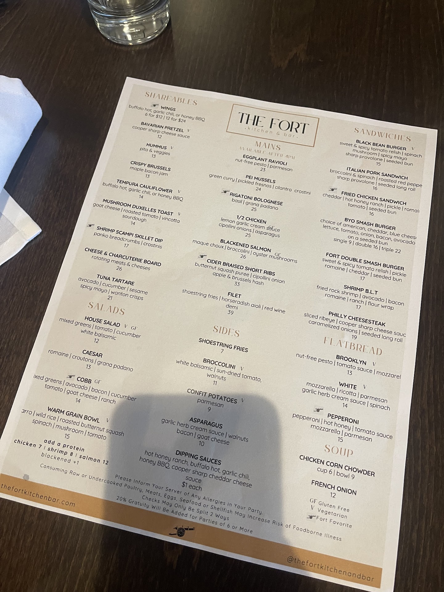 Read moreAttended an after work function here back in June. It was open bar and the drinks were flowing pretty nicely. The wings and pizza were also on point. Well imagine my surprise when after it ended, my friend and I returned back to join our fellow co workers who were the last ones to leave, only to be told that we would not be served further. I couldn't believe it because although we were a little loud upon re-entry, neither of us were inebriated. Tipsy and in good spirits, yes, but that's what happens at a bar when you have control, and just want to enjoy yourself. After the waitress told us we couldn't order drinks, not making a scene, I asked for a manager. I can accept a bar's decision no problem since they have to protect their business, but I simply wanted an explanation why we were refused service. The manager came out, we had a conversation, and she wound up apologizing saying she could have handled it better. I will say she approached the situation like a true professional and with tact. My friend and I are black, (the other co workers were white and kept drinking, no problem and were probably more hammered than us. LOL) and I didn't think to make it a racial issue, I just wanted to be treated fairly considering we were hoping to patronize the establishment and spend more money. We didn't push the issue any further, but before I could leave, the manager (I think her name was Julie) called me back and gave me a gift card to return back another time. I gave her a hug and appreciated her going the extra mile. If more establishments would look to treat customers equally as people without judging, this world would be a much better place. Kudos to The Fort for employing amazing staff...
