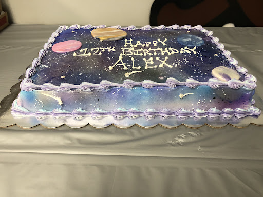 I ordered a galaxy-themed custom birthday cake for my sister’s 12th birthday, and it looks AND tastes great! We were very specific about the elements of the design, and Kym integrated all of the elements beautifully. I especially loved the inclusion of the shooting stars on the sides of the cake. I also ordered galaxy-themed custom cookies to be put in our party favor bags, and they fit the cake’s theme perfectly. Kym even used ribbons that matched our theme to tie the cookie bags, which I didn’t initially ask for but greatly appreciate now! The cookies tasted delicious as well. My sister loved the cake and cookies!!