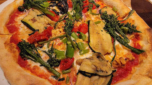 The highlight of the meal was the food. The pizza that I got was the Carne Asada pizza. It was a cilantro pesto base with Carne Asada (marinated steak) on top with cheese and onions and cilantro. I asked for the salsa verde to be on the side as I was skeptical about that. I was right - the salsa verde was way too sweet and would have overpowered the pizza. I thought the flavors all worked well together and it was a very flavorful, cilantro-y pizza. Which I absolutely love! I definitely recommend trying this over a traditional pie. My boyfriend and sister got the Margherita and the burrata pizza. They both enjoyed it and we had leftovers the next day. The prices were also pretty reasonable and would get take out, but dining in was not that great. This place used to be packed on the weekends and would have a long wait back in the day - it’s surprising that there are so many open tables and I’m shocked at how dead this place is. The food is amazing, service sucks, but def...