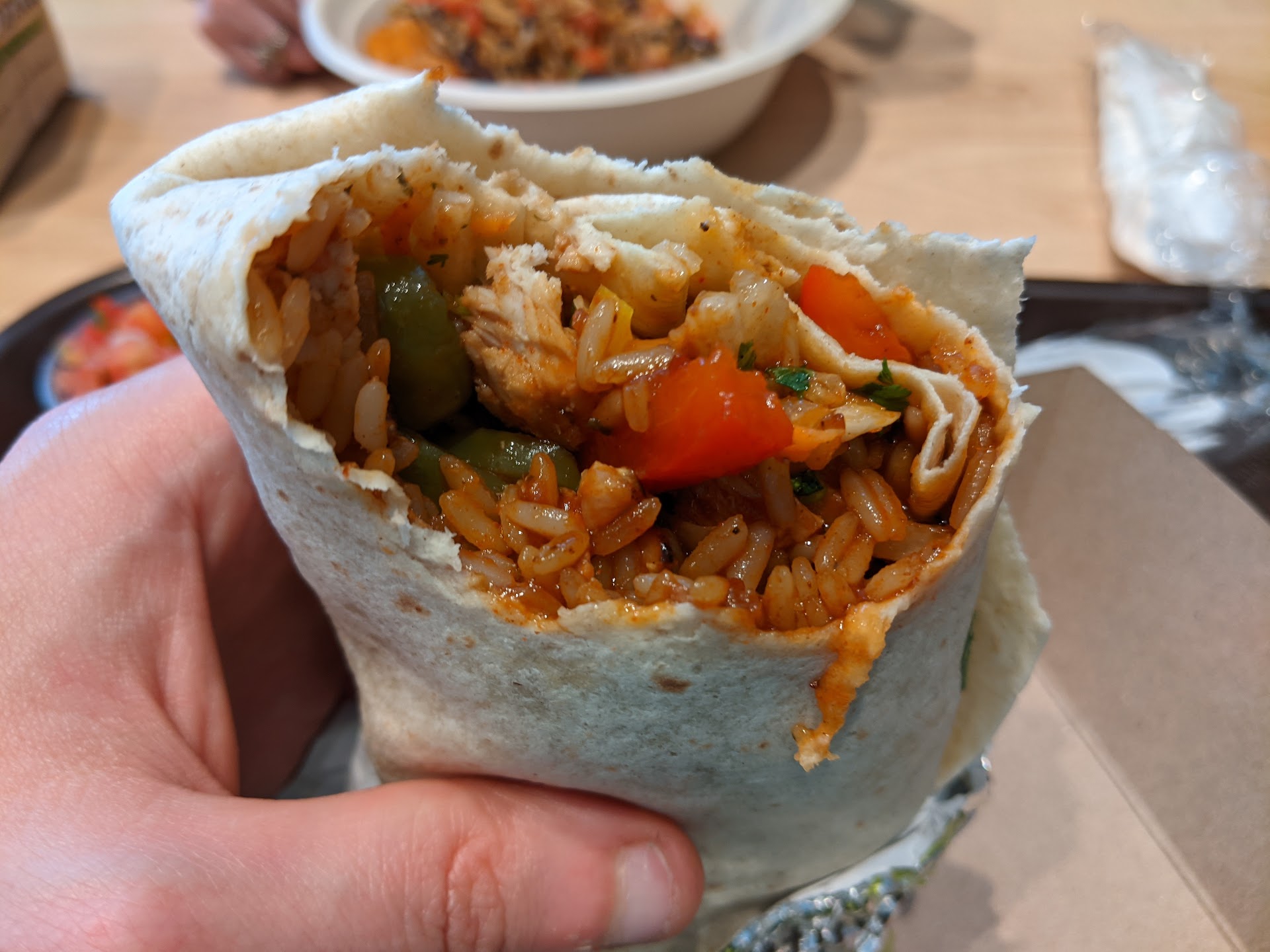 We got a Korean BBQ chicken burrito, a tofu bowl, and chips with guac. The menu has a lot of options and fuses different cuisine types.