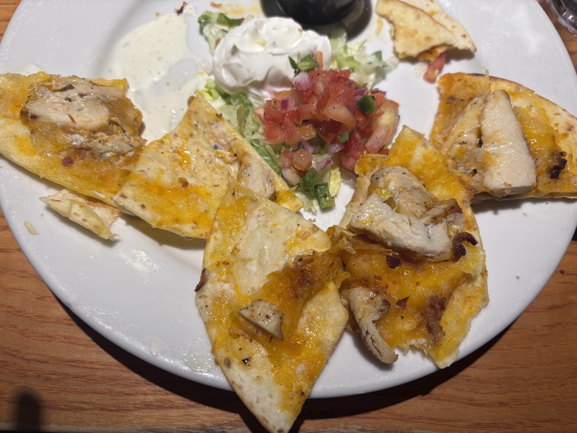 The food was as good as we expected from our past experiences with Chili's. I think 3ForMe (Drink, appetizer and entree) for $10.99 was a good deal. Quesadilla Explosion Salad was as good as usual per my wife though it was missing tortilla strips completely for some reason.