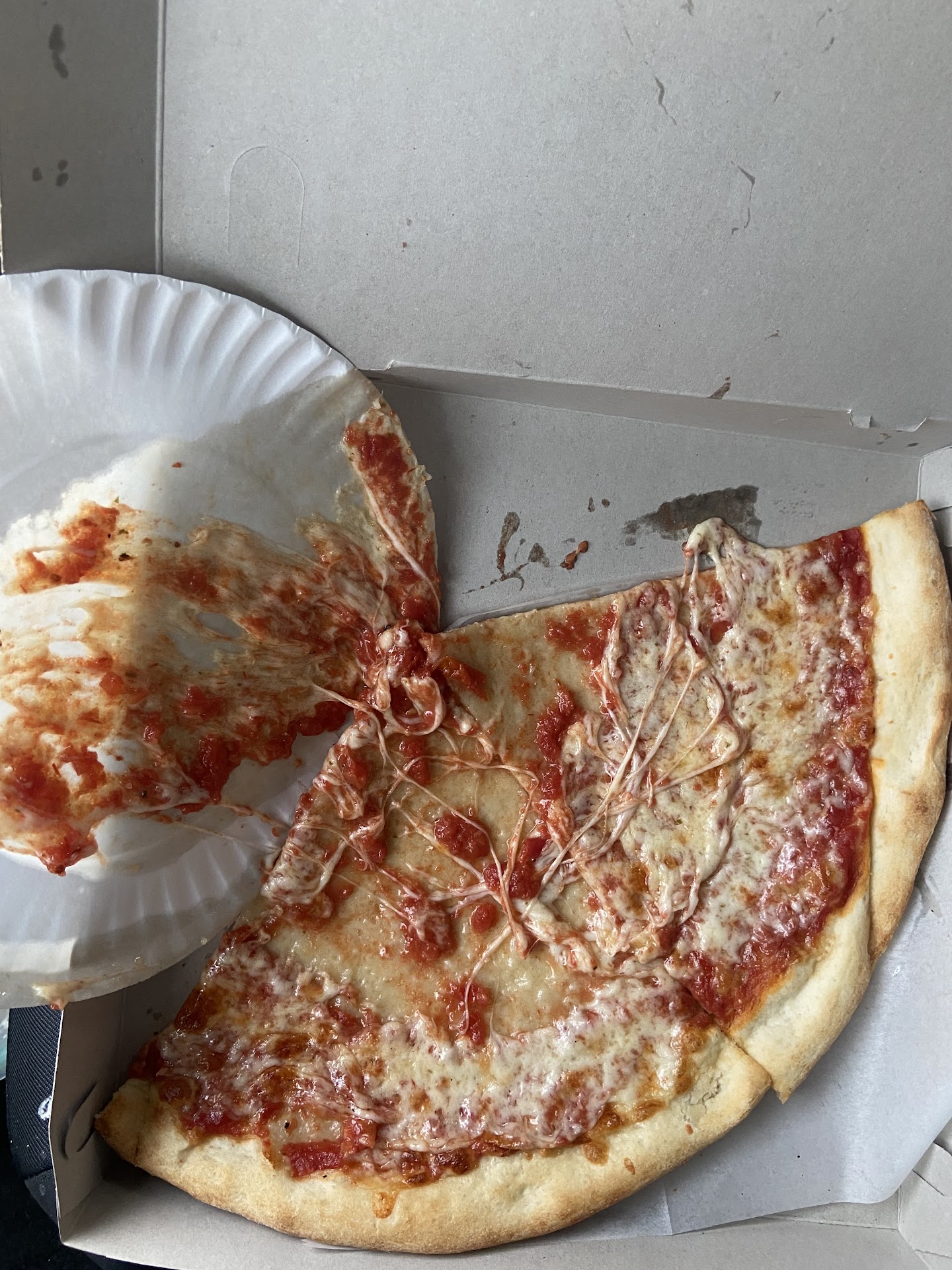I've never gotten a whole pie there, always slices. Their grandma pie is what really is close to what you get in Italy. Thinner square Pizza, fresh tomato chunks pieces, fresh squares of mozzarella and regular shredded mozzarella cheese. When they throw it in the oven, it heats up and crisps perfectly. It's seriously the best. They also have a good slice called vodka with a pink sauce instead of the standard sauce. It's a nice change once in awhile from regular pizza.