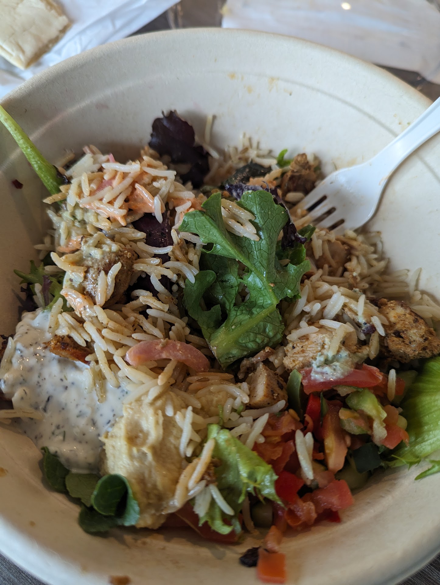 The food is absolutely delicious (extra emphasis on delicious) and hands down one of the best Halal places to go to for the mall. (Please try them!) HOWEVER, this review is solely for the experience and staff. They are not nice to you what so ever. They do not smile and welcome you at all(expect the guy, he smiled). From the 1st time till now I have had the same experience. Itās so off putting. The āmanagerā who goes by Alex or Alexandra idk is emotionless, not empathetic at all, rolls her eyes when you are explaining what you would like to order. I came for a gyro wrap and they (2 people ! ) were making me a bowl. Not knowing how to order because itās your first time and do not know what to get, I was confused and the service honestly left a bad taste in my mouth. The other associates have a hard time explaining what the ingredients are because their first language is Spanish , thereās no problem with that at all. However! If you have front line servers, please coach them on how to explain ingredients and also to just be NICE. I would rethink who you choose to put in leadership roles which ultimately have an impact on peopleās perspective on the business and overall experience. Good food + great experiences = longevity and higher return...