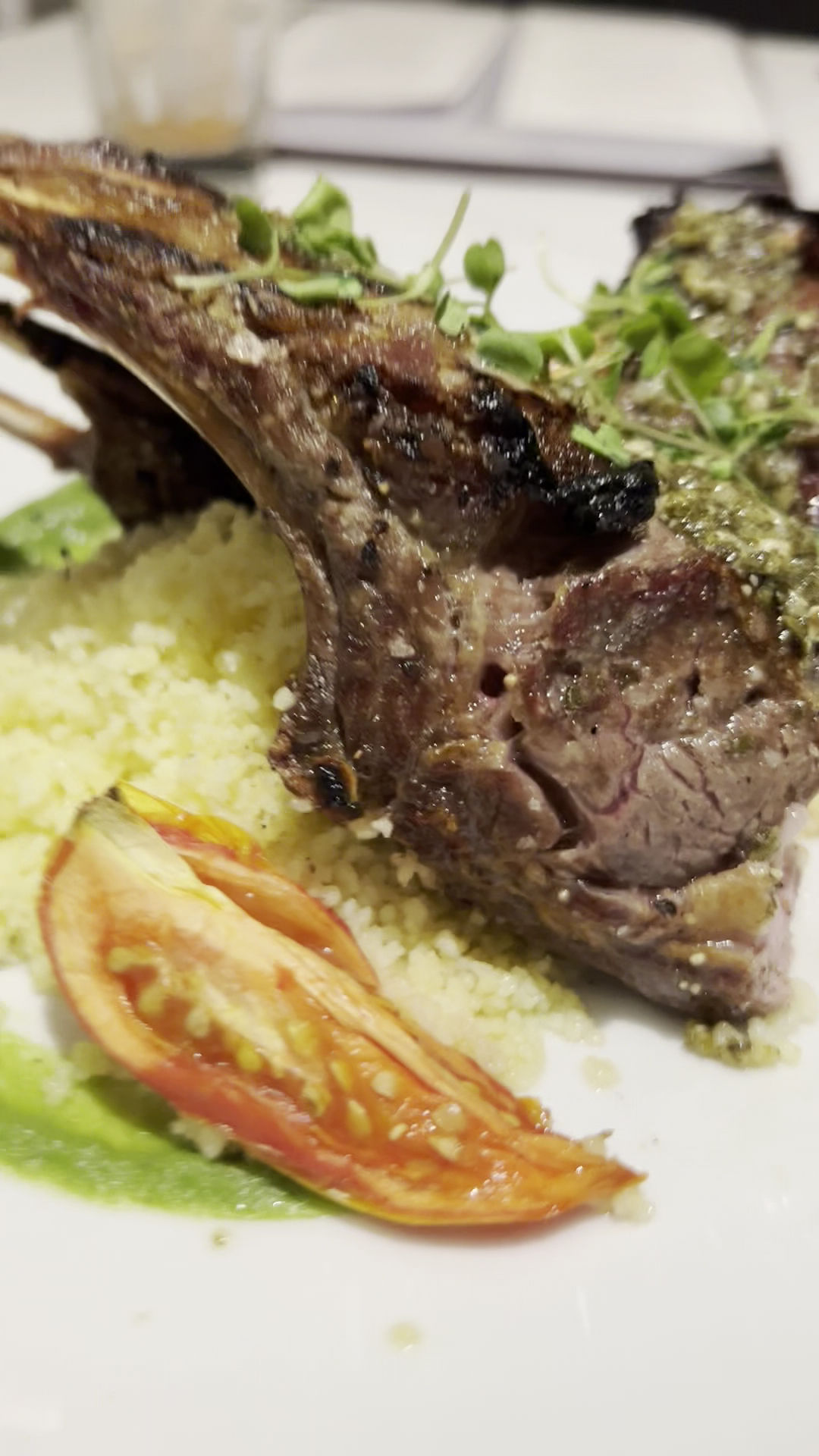 Both my husband and I ordered the lamb med done. Once cutting into my second lambchop I noticed it wasn’t cooked to med and was quite raw still. I sent it back when they brought it back out there did replate it with more fixings to make it look better.