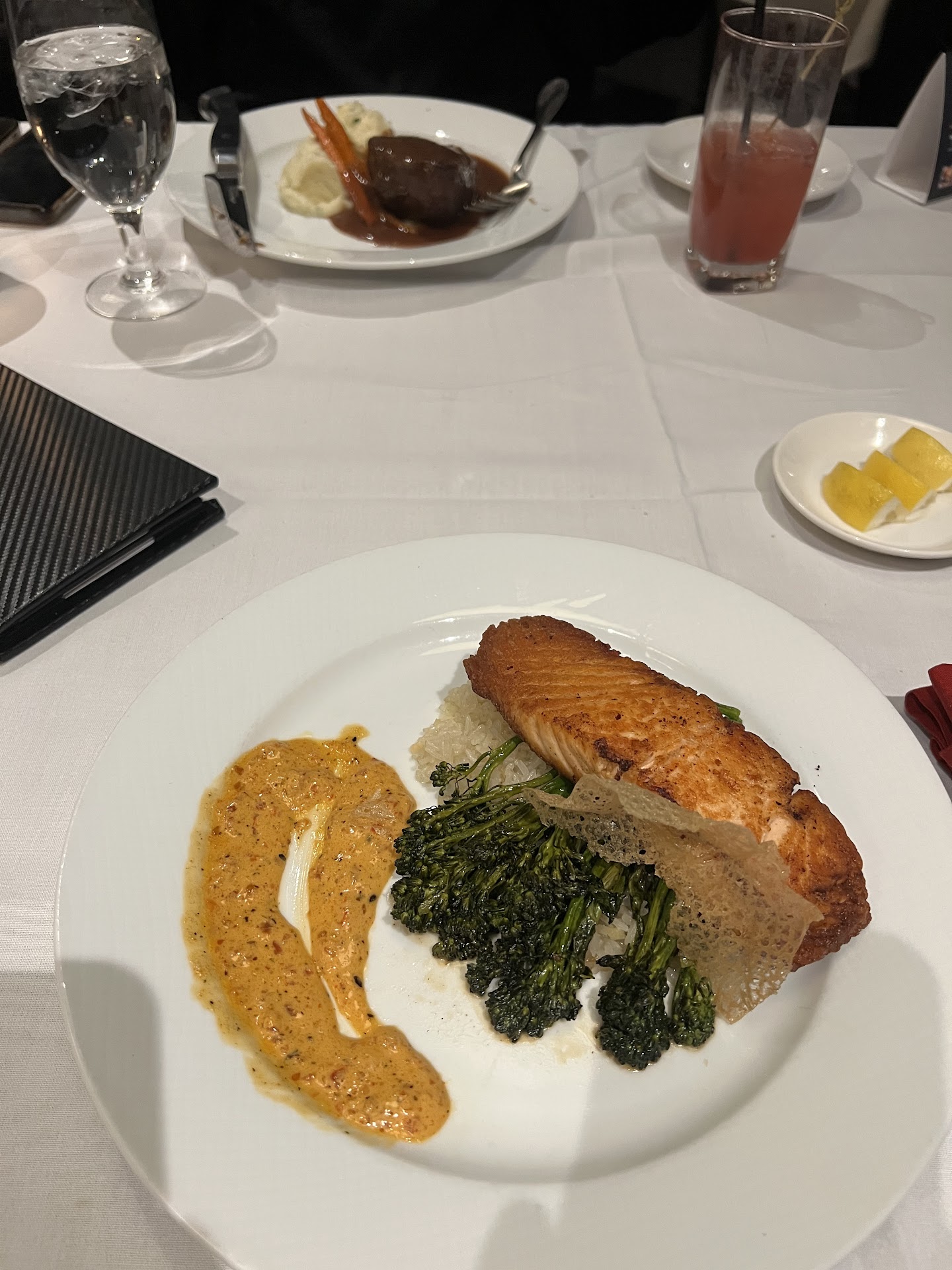 Food was amazing we started with Oysters some of the best we’ve had around here very plump and clean. The roasted lemon was an excellent touch.