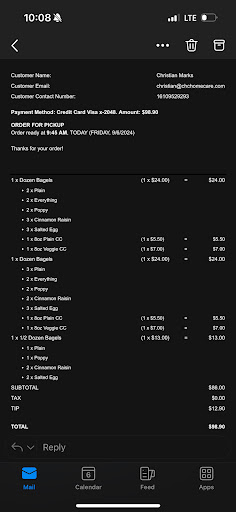 Being objective this place has good bagels, breakfast sandwiches and coffee but the service is poor along with how they prioritize making orders. Do not order online and pickup in the store, there is no point as they prioritize the customer in-store even though they give you a pickup time. This weekend we placed an order online, it told us twenty minutes later as our pickup time. We arrived at said time for a bagel and two breakfast sandwiches. There was no line so when we arrived we went out the cashier and she told us it was not ready but our order was up next. We then proceeded to sit and watch as customer after customer came in, ordered their food, got their order and left. It was so bad we started counting and 15 customers came in ordered and left before we finally said something. At which point they again told me it was up next. It had been 45 mins, 25 mins past my "20 min estimated" so I asked for my money back. A guy, I assume a manager came and instead of apologizing told me that online orders are separate from in store orders and that my order took longer to make because it was a tuna melt. First this is terrible, just apologize for our wait regardless of reason, why are you defending your internal process. I don't care, it's obviously not working right. Second there is no excuse for any customer to wait 45 minutes for three bagels sandwiches. There were multiple customers who came in after us sitting eating tuna melts and pastrami sandwiches while he was saying this so don't BS just say we missed your order. Lastly, salt in the wound, we get the order, leave and get home and they messed up the order and gave us the wrong stuff!! Long story short, I thought ordering online is so you don't have to wait as long when you arrive, why else would you order ahead. If you give a estimated pickup time you need to be somewhat close to that time otherwise your customers are going to be frustrated. If someone is frustrated just say your sorry. Don't oddly tell the patron how your right and there wrong. You set the expectation when you gave me a pickup time don't be mad if I am holding you to that. You weren't even busy. The only person who tried to make it right was the poor cashier who handled herself professionally and apologetically. The manager needs training on how to deal with an upset patron, maybe the cashier...