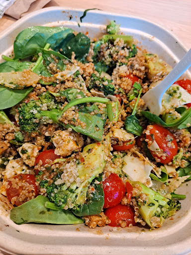 Ā Ā Ā Read moreI was really looking forward to this place as my family and I had never tried it before. Needless to say, I was totally disappointed with everything. First, we placed a mobile order for pickup at 1:15pm and did not physically receive our order until 1:40pm. We arrived around 1:20 pm and had to wait in line to ask about our order. Once my husband got up to the counter, he was told that the order was ready, but he had to wait in the "pick-up" area. So he waited an additional 12 minutes as everyone else in line received their orders. That was a really awful first impression and it was just generally rude. Poor service, especially when the food isn't cheap and we placed the order almost an hour before our pickup time. The food was not good either. The portion sizes were fine and the ingredients seemed fresh, however, I couldn't taste anything but cilantro. There was so much cilantro that it overpowered the entire bowl; I could barely taste the pickled onions and there was no trace of sauce. My kids got a side of focaccia and hummus with their food, but the bread was so dry that you could barely swallow it. The apples and tortilla chips that came with their meal were saturated in whatever dressing they use on the chicken, making them soggy and inedible. I can't see myself going back there again. Total waste of...