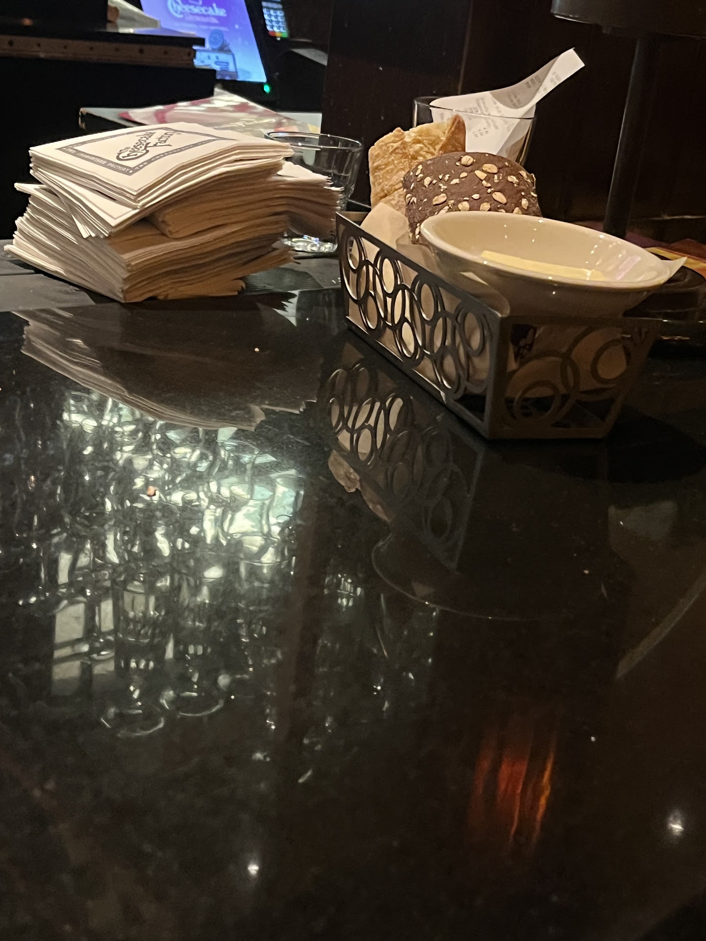 Debated on leaving a review for the past few hours but this is not the Cheesecake Factory service I’m accustomed to. Any location I have dined at, I have always had a 5 star experience. This was the first time I have visited the King of Prussia location which is about an hour away from where I live. Went in on a Monday night and we noticed seats at the bar which is where we discussed sitting prior to arrival. Brooke was the bartender and appeared pretty busy however we got menus/drinks pretty quickly. Put our appetizer in (Poke Nachos) and it took me a little longer to order my entree as everything looked pretty amazing. Our appetizer was fantastic when we were not fighting off the fruit flies trying to dine and dash on our dish. So far so good! When we got our entrees we were patient knowing the bartender was busy and when she stepped away from the service well to check on us, we asked if we could get some bread since we didn’t get any after we ordered food. She agreed and we waited and waited. After a while my boyfriend asked if we could get the bread and some hot sauce and she stated she put the order in and it was given to the guy next to us. She said he (the other guest) is not eating so that is your basket which the guest next to us already touched since it was in front of him. We asked if we could get fresh bread since it was sat in front of him and she argued with my boyfriend that it was our bread! Ok I tried to diffuse the situation and said that we know she is busy and we can wait. She then said nothing, walked away and went to the service well, finished her bar tickets left the bar and went to the back assuming she went to get us bread. Nope she came back said nothing to us just walked by not even offering a refill on my empty iced tea or another drink for my boyfriend. Ok no problem we heard the server behind us tell her table that they are making fresh bread, ok cool, Brooke could of said that. However still having a great time!. By this time I wasn’t going to say my order was wrong and I barely touched any of it. The shrimp was supposed to be fried but was grilled and my pasta was dry. A few minutes later a female manager came to us and asked us what the problem was? My boyfriend said he just didn’t feel comfortable eating bread that was given to another guest and just asked for an untouched basket. I lost my appetite at this point because why were we asked that? She then asked what was wrong with my dish and I said I didn’t complain about it but she can just take it as I no longer wanted anything at this point. Jason came out about an hour after our arrival apologized and offered us dessert which we politely declined. 5 stars for Jason’s professionalism! He seems as though he would be an awesome manager! I have been in the service industry for 32 years as a server, bartender and currently a manager as well as my boyfriend who was dining with me, I have never sent a meal back regardless if I didn’t like it or asked for a manager. I attached a picture of the bread from my POV, clearly more than an...