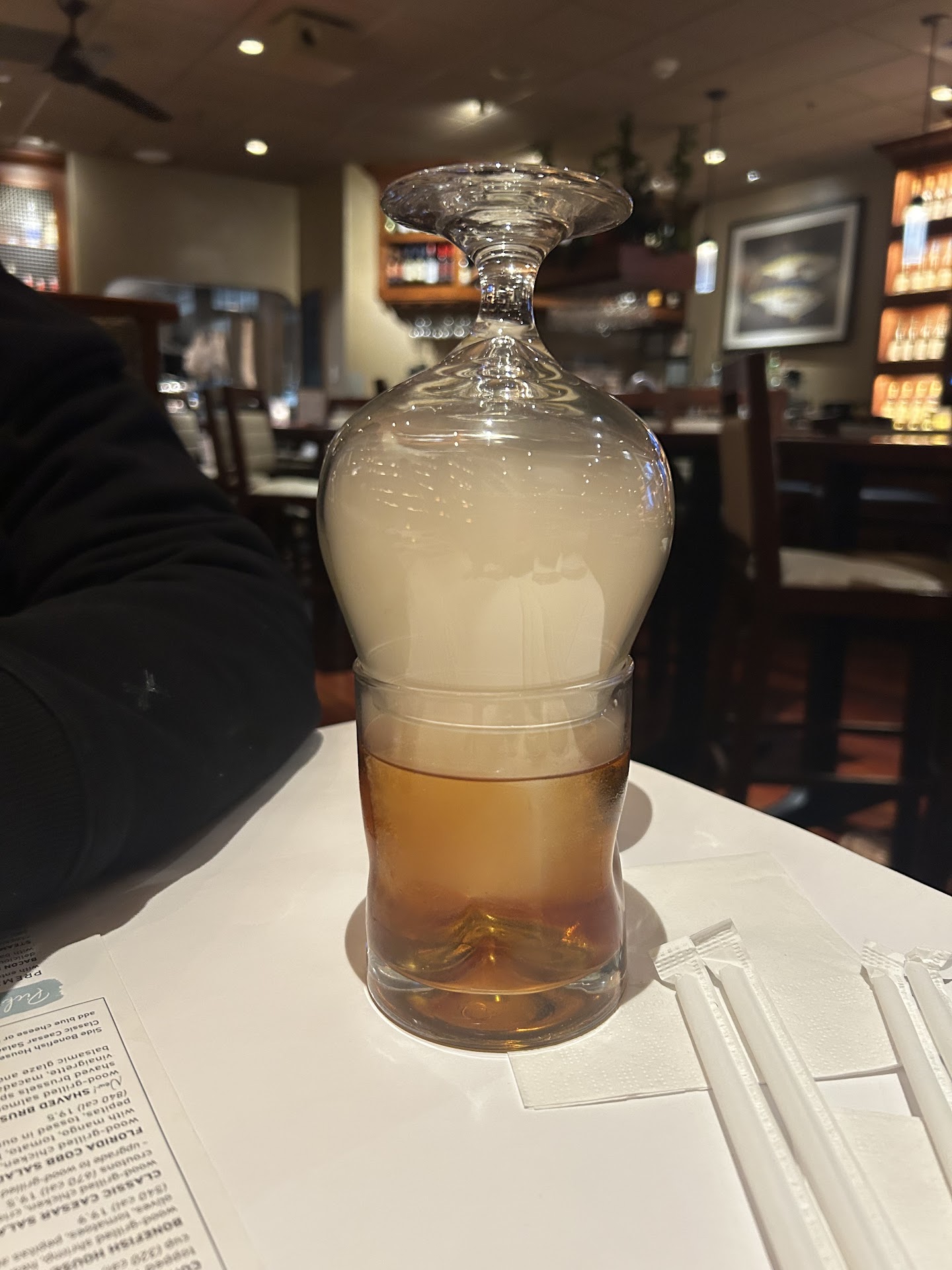 This location totally disappointed me due to the fact that I love bonefish Grill and normally I go to the location and Fairless Hills, Pennsylvania, but me and my dad was in this area and I wanted bonefish Grill so we decided to make reservations and have cocktails and dinners together Upon arrival we decided we wanted to sit at the bar which we did. There were about four coworkers just standing in aisle while on duty in between the dining area and kitchen area just literally bussing it up like they had no job to do. They were super loud just cracking up laughing loud, but that wasnât even an issue cause I didnât even care I just wanted to eat.,The problem started to come when our cocktails came I received my cocktail and after a couple sips, I noticed my cup looked dirty. I asked my dad does this cup look dirty only because also at the bottom it was very sticky every time I sat it down my napkin kept sticking to it, and I had to like peeling whatever stuck to the glass off. My dad said itâs probably just the color from the drink đ· and not worry about it so I ended up just putting a straw in the glass and drunk my sangria. We ordered a dip I believe it was a lobster dip which was OK not too bad flavor was good but then after afterwards we wanted to leave and just take food to go due to the weather so we decided to order filet mignon with crabcake and mac & cheese dad ordered I believe a stuffed cod or something like that to go And I ordered a slice of cheesecake to go. When we got back to our home to sit down and eat dad and I was so disappointed and shocked. First of all the filet mignon was the size of a toddler and it was overcooked when I specifically asked for a medium rare And it was dry no flavor no seasoning no nothing then dad tried the mac & cheese that was super dry no seasoning no flavor. Heck, no cheese basically they gave us noodles and butter. We were so upset that we didnât even try the stuff cod or fish whatever dad got because the other food was so bland that we just already knew it wasnât gonna be good, and then the fish was like the size of a toddlers hand with all this stuffing just piled up on it. Iâm a share a pic about that. So all in all service cool experience OK food zero out of 10 I wonât recommend. I donât know if they was just messing with us because I read the reviews before I went and again before I made this review and it seems like everybody else food was lit đ„ and tasted good so I donât know if they was just messing with us or the cook was in a bad mood that day or nobody just didnât give a damn nor wanted to do their job, but yâall need to work on how to cook food better and seasoning because thereâs no way mac & cheese should be tasting like yâall just boiled noodles and poured into a whole container. This is why I gave one star...