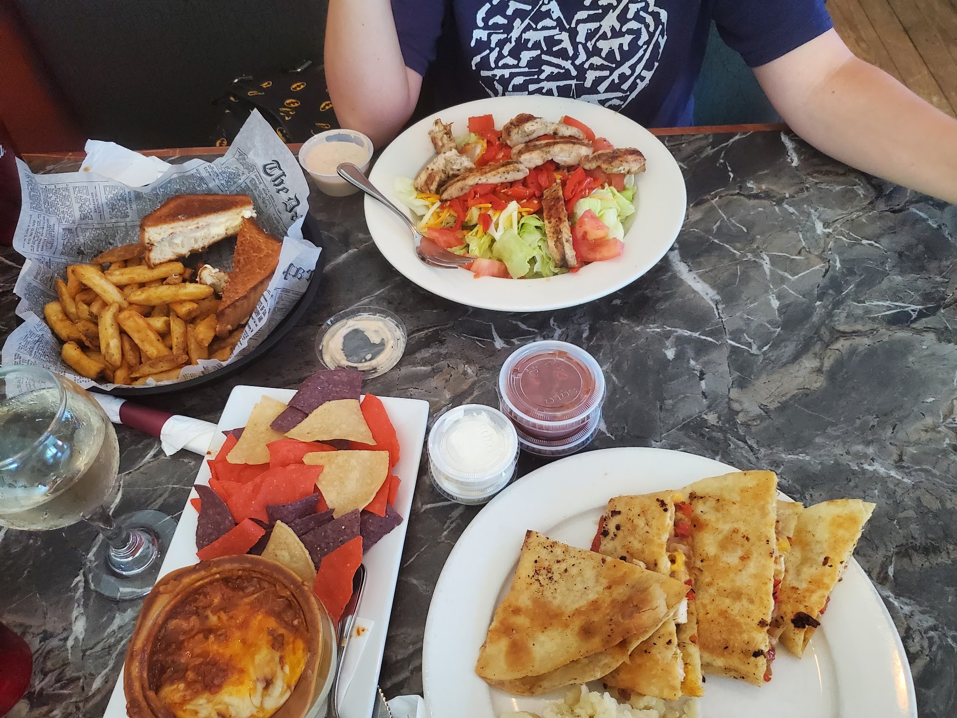 We seen all you can eat crab legs was their on a Saturday nite. So 11 of us went their for crab legs. Our server which I feel kinda bad forget her name was good. We did ask for 3 separate chks. And she did tell us in advance that the gratuity would be added due to our party size. After we all had a couple rounds of crab legs our server told us they wer running out which kinda made us rush to kinda wanta get more. And in turn their wer plenty and we all over ate till we wer stuffed. It was my first time bac their since b4 Xmas. I find the inside atmosphere to be dull ish boring and kinda a debbie downer type of look. Theirs no feature wall or theme type thing there. It's just so basic/plain. But we noticed they had an outside eating area that looked nice. So a few days later we went back their for lunch and ate out side and it was very nice it's small but doesn't feel that way. One of more nicer outside patio areas I've eaten at lately. Big menu. Food good just lik anywer else, some things are better then others. I personally love sweet potato fries homemade chips, tator tots really good and wings there. I know all the carbie stuff i like. But over all it's not bad for area. It is spacious inside wer your not on top of one another. And ok for ur local neighborhood place. Lik a dinner but not. If that...