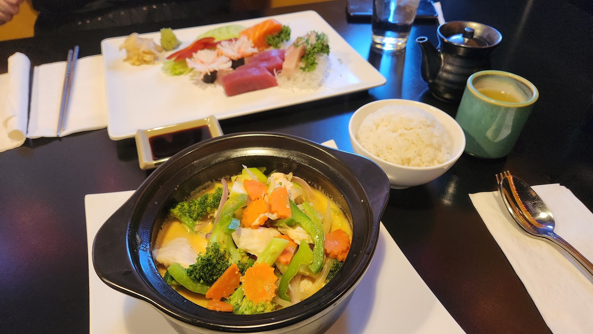 A typical Chinese own restaurant, not the authentic Japanese owned restaurant, if you’re wondering. The lady was pretty nice and made me felt welcomed with a little one I have with me. I ordered a lunch beef fried rice for my little girl and a 2 rolls sushi for myself. I am surprised the lunch beef fried rice comes with a tom yum soup while my 2 rolls sushi comes with a miso soup. Never a place I’ve been to offer tom yum soup with the meal. It is always miso soup only! The beef fried rice came out alright, but I wish it could be a bit more dry than soggy. The two sushi rolls were average, nothing too special. I will probably try out other places if I’m around the...