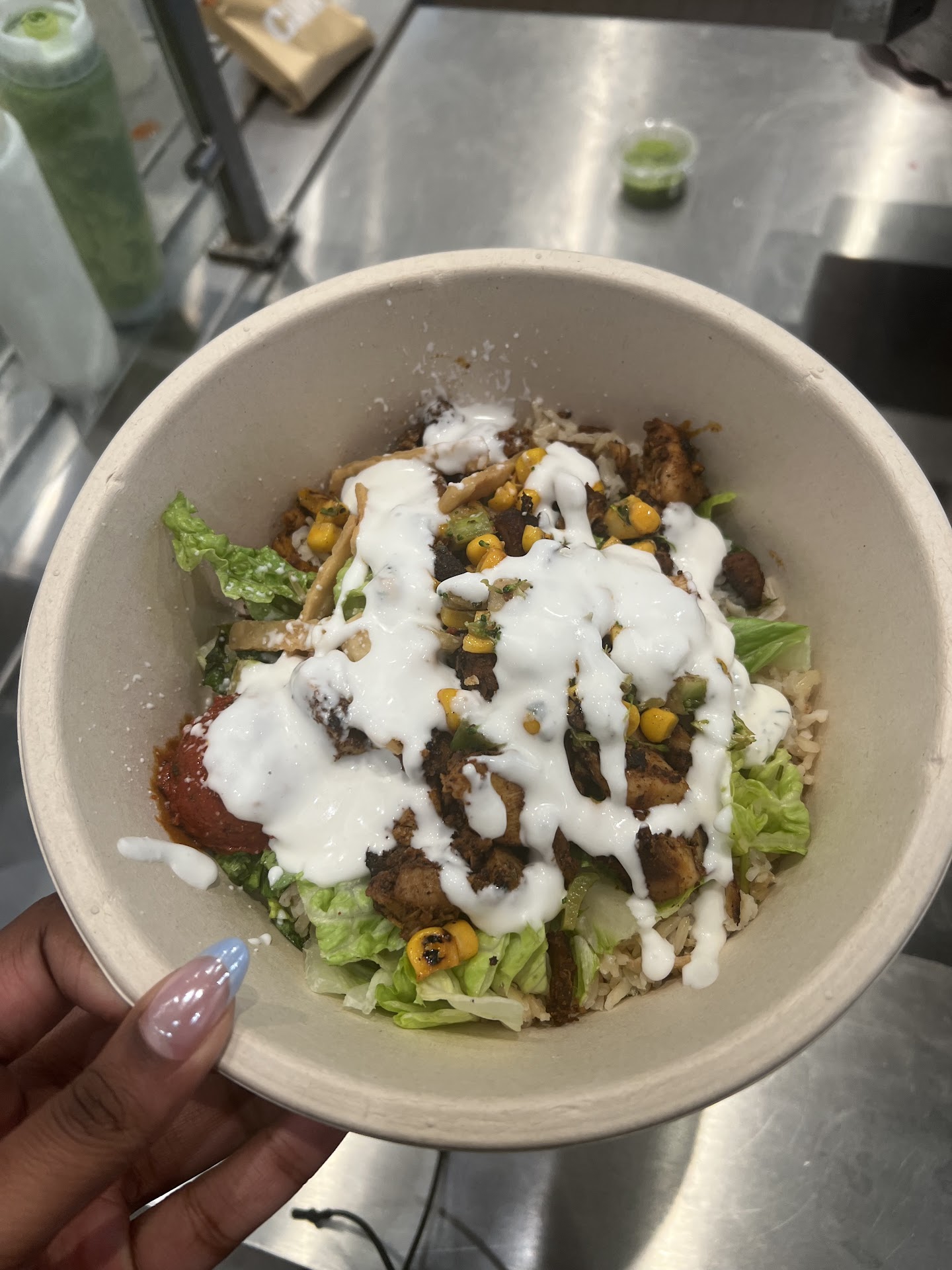 Read moreThis is my 3rd time having CAVA in the last month. I have ordered the Harrissa option all three times. The first time it was made well. It looked artistic. The last two times (including today) were nowhere near in comparison to the first. But it tastes so good I honestly didn't care how it was presented. Yes I was annoyed that everything was thrown in the bowl. But my biggest gripe has been the service. Each time I have ordered it has been online. You would think that it would speed up the time it takes but the To Go line is much faster. The young woman who prepares the Online Orders in the back moves like a snail. She looks to be of Hispanic decent but she has Air Pods in. How can you effectively work with noise cancelling air pods in your ear. We need to figure this out. The young black lady I think her name is Muva. She is basically running the entire restaurant by herself. She is managing the To Go line and has to manage the Online Orders because everyone is in her face if she doesn't as she is the cashier. God Bless her. Even with her tireless efforts to control the wait time. The Online Order line is always just as long as the To Go. If my order says it will be ready at 12:15. Why is it always 12:40 when I get out of there. My lunch is over at that point and I have to scoff my food down and I don't like that. What is the point of ordering online. I noticed that there is a new man that works there, he looks to be around 40-50ish mixed race/other. I don't know but he is trying his hardest to help as well but he is too just one person and I am not quite certain he knows enough to even do a good job. He takes a lot of his lead from Muva who is already stretched thin. WHAT ARE THE OTHER PEOPLE DOING IN THIS STORE??? It's like 6 other people in there and they are all MOVING like snails. I never seen people in the food service industry move so slow. As a matter of habit you would think there would be some type of style if you have been in the business before. This location sucks and those two people cant run it...