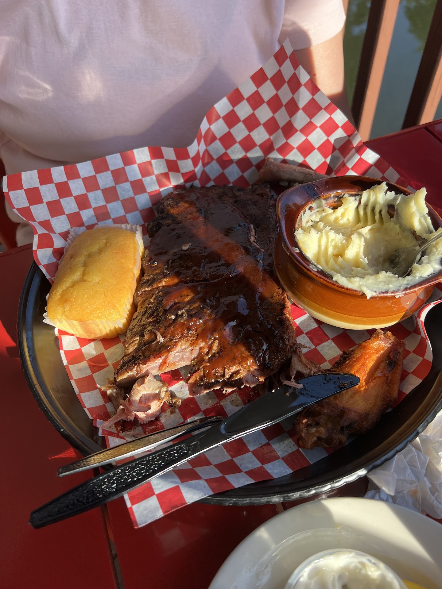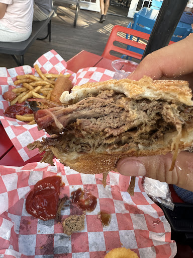 Read moreI was so hoping to love this place because its location is incredible. Unfortunately, this wasn’t the story. I came there for late lunch/early dinner on a Thursday, beginning of October, the weather was perfect, we set outside. I ordered the famous brisket sandwich because the smell of the smoker outside is what got me in. Now here the thing, in my opinion, there is not a chance that brisket was made that day, I BELIEVE they make loads of brisket and either freeze them or refrigerate them. There was absolutely no reason why my brisket will taste old and be dry as a desert - almost zero moister along with zero fat. The onion rings I orders were absolutely frozen when I ordered them, I received them barely warm and not all the way done, the first taste, tasted like oil - bad. Unfortunately, the French fries that came with my daughter’s kid meal were the same, old, sad and simply taste like oil. I really want to believe they had a bad day today or maybe it’s the change of season - which also not suppose to happen but I would give this place another chance if I’m in the area, only because I really want to love it. Additionally, they say they charge 4% extra to use a card which is ridiculous - I don’t care if you raise the price for the entire menu by 5% - it feels better than charging someone extra just to use a credit card. In reality, I was charged $19 plus tax for the brisket sandwich that was $16 in the menu. In reality, 4% would have been...