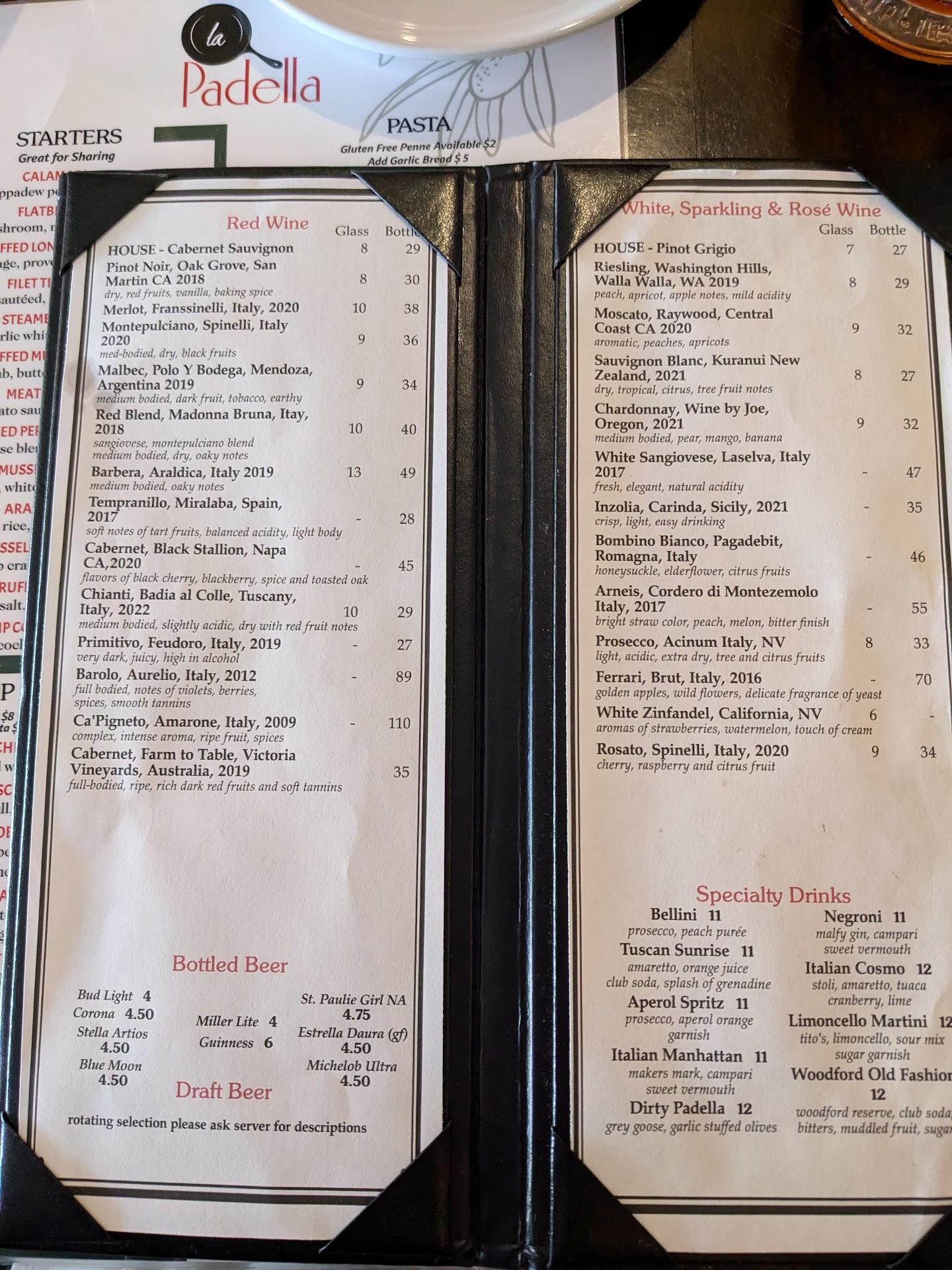 Read moreI was so excited and optimistic going in..... However, LaPadella gets 2 👎👎. Where to start...I wouldn't call myself a wine snob, but I know my wine and I should have walked out after I saw Canyon Oaks as their red wine by the glass selection (yuck). I ordered the frutti de mare for $26 and I actually had to ask the waitress if it was the adult portion. Anywhere else this might have been called an appetizer. It literally had about 1/2c of grossly over-cooked and tasteless pasta, 2 shrimp, 2 clams, 2 mussels, and 2 really overlooked scallops. The "bass" was nowhere to be found and the calamari was microscopic but I might have eaten a couple? I left ready to eat dinner - I was so hungry😟 My husband had the Bronzino ($24) on some orzo with no additional side and the kids had kid portions of pasta which were larger than my "adult" portion. We ALL cleared our plates and had not a piece of pasta to bring home. I'm sorry but that has NEVER happened eating at an Italian restaurant before. And the bill was over $100 (we also had a calamari appetizer and a glass of wine). So...