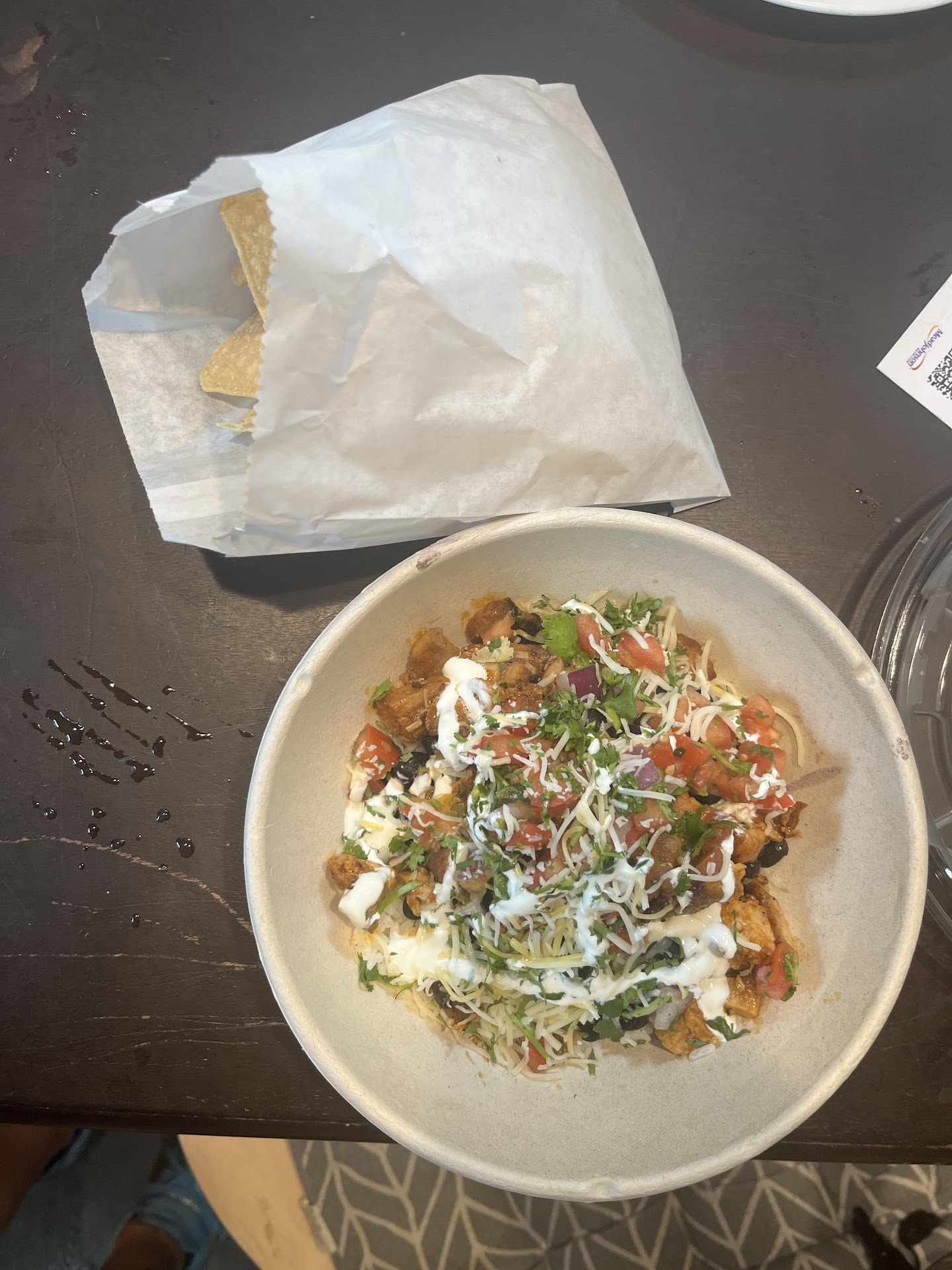 Read moreI was very, very disappointed in the portion size. My chips were like $3.45 and it was a tiny little bag that barely had any chips in it. I recently went to another qdoba and I got a great serving of chips so I was very disappointed by the amount of chips I was getting and especially the cost of them. My bowl portion was also very small. It was filled less than half way. The reason I gave 2 Stars is because my food tasted amazing. I was just very very disappointed by the portion sizes. Also when I went to check out the girl told me my total was $55. I ordered 2 chicken bowls & a bag of chips. I was like how is it $55? Eventually she figured out the mistake but overall I wasn’t happy with the portion sizes and would shy away from going back again...