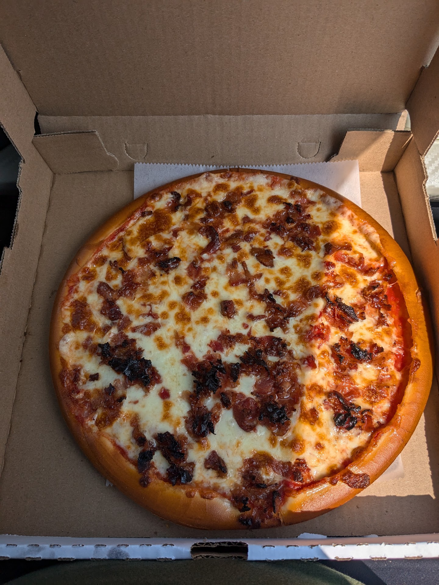 Read moreMy girl and I stopped in to check out Carlo's after we had heard such great reviews from some dear friends. So we decided to get a couple of slices.As we stood at the counter and ordered,I noticed I could see into the kitchen.Now being in the service industry field dealing with sanitation issues in kitchens,I must say I was not impressed. The kitchen appeared dirty and cluttered not to mention the guys in back were eating off of what appeared to be a prep table. And it wasn't even busy so there is no excuse for a dirty kitchen. We sat down with our slices.Both slices fell apart as soon as we picked them up. The cheese was disgusting and we couldn't even finish them. Will not ever eat here again once and done. Listen people if the kitchen is dirty just imagine how the food is prepared. Ecco and Tony's will get our business...
