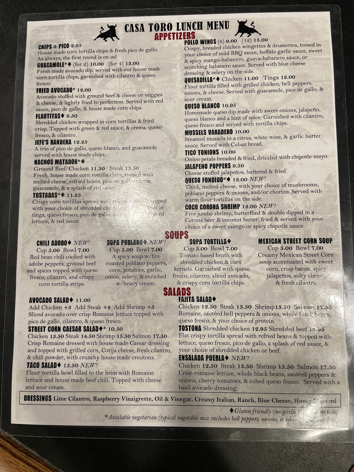 Read moreI have been going to Casa Toro for over 10 years. The food has always been delicious and service has been great. I have only ordered take away since Covid started. Today I went with my family of 10 for dinner at 4:55 and was TURNED away, literally turned away. The manager informed me that she couldn't seat a party of our size and that she had turned away another large party earlier. I asked if we could split into a table of 4 and a table of 6 and she said she still couldn't accommodate us.