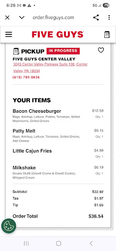 Read moreOrdered online food wasn't ready for an additional 20 minutes. Staff could care less. Milkshake was not cold and came out literally like milk. Not a pleasant experience at all and extremely long wait. Took over 35 minutes to make 2 burgers, 1 order of fries, and a milkshake. Food was mediocre at best. What a shame, not even close to other locations I...