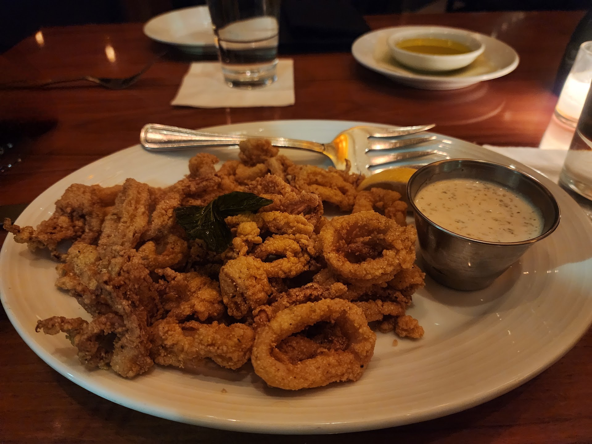 Our first drinks, the "Uva Bianca" and "Cala Luna," were visually appealing and enjoyable. Both were balanced and well-executed, a promising start. For appetizers, we chose the "Calamari Fritti," served with lemon aioli, fried basil, and fresh lemon. It was crisp, flavorful, and paired well with the aioli, though it quickly lost its texture as it sat. The portion was also smaller than expected, which tempered my enthusiasm.
