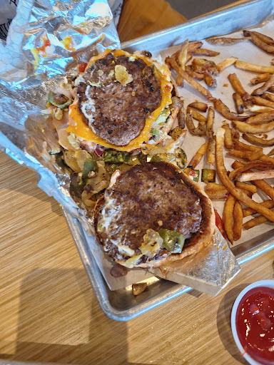 This time we ordered a make-your-own salad and the Southwest BBQ burger meal. The burger was supposed to have some seasoning to it, but I could not detect any - perhaps due to the BBQ sauce, the french fries, the cheese and onions. It was tasty though, and I handled the lack of heat by grabbing some of the available Tabasco to dunk the burger in.