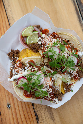We stopped here Saturday for lunch for the first time... How did it take us so long to go here... it was a big mistake on our part waiting to try the food. We pulled in and saw a sign to park to the left... got up to the window and placed our order. After getting our tacos pretty quickly we chatted with owner/chef, Vanessa, who is awesome!!! We ordered beef tacos and on special Portobello tacos and both were delicious... You get two soft corn tortillas with each taco (meaning you can make two tacos out of the one taco) along with chips! We also got some churros for dessert which were light on the inside with a little crisp on the outside. There is music playing on the speakers, cornhole, and live music on certain nights with a BYOW (bring your own whatever)! You have got to try this place as soon as possible and we will definitely be back so see...