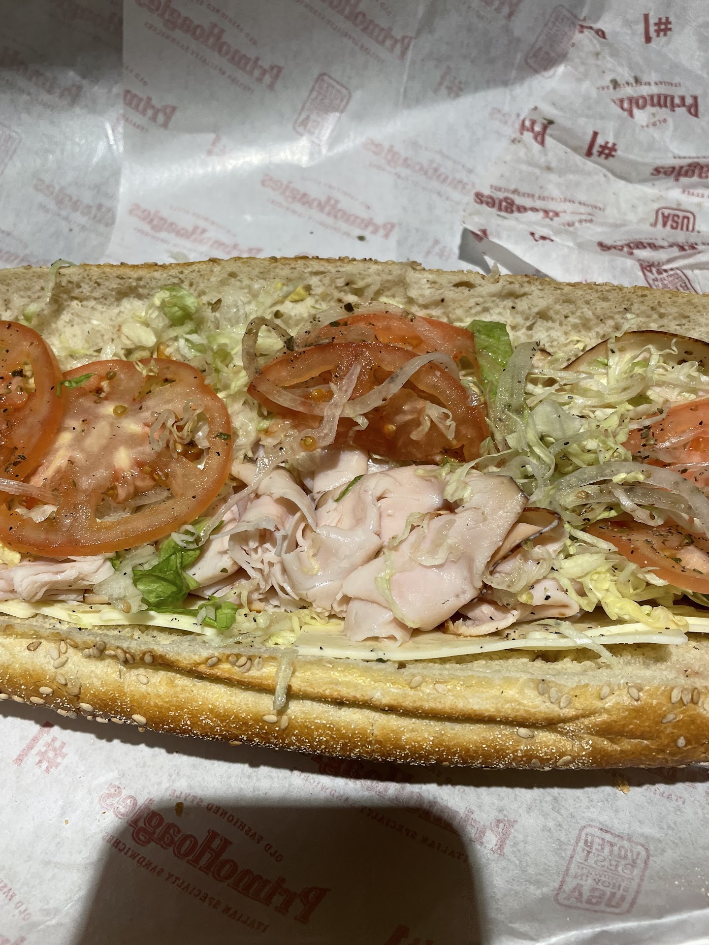 Read more(UPDATE: The company replied to my review with an invalid web address for a form to complete). My partner offered to stop and pick up a hoagie on his way home so that we could have a light lunch. He called ahead and they said "15-20 minutes". He got there 25 minutes later and still had to wait for the one sandwich in our order. The sad medium hoagie (turkey schwartzie) was on the driest roll I've experienced. I realize that Primo is known for their seeded rolls, but not everyone likes that, so we got a plain roll. Who knew that choice would be terrible? Add to the fact that a small 10" hoagie is SIXTEEN dollars now. Wow. To quote my partner, "This is probably the LAST Primo hoagie I will ever eat". ...