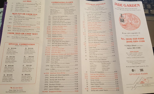 Read moreJade Garden has a few different items on the menu. Their food is very good, but they also can have an off day like others. I do hold them at a higher status than other now local places or places I drive out to . Definitely try the tea sauce spicy chicken is delicious, the honey chicken is good, crispy chicken is good and is similar to honey chicken. The bourbon chicken I believe was decent, I don't recall it too much, but don't think I disliked it too much. The general gau's chicken was good, and moo shu was good as well. It's a good restaurant to grab some really good Chinese, and they've had an off day less than other places I go. I enjoy their menu choices over the normal same old' same ole'...