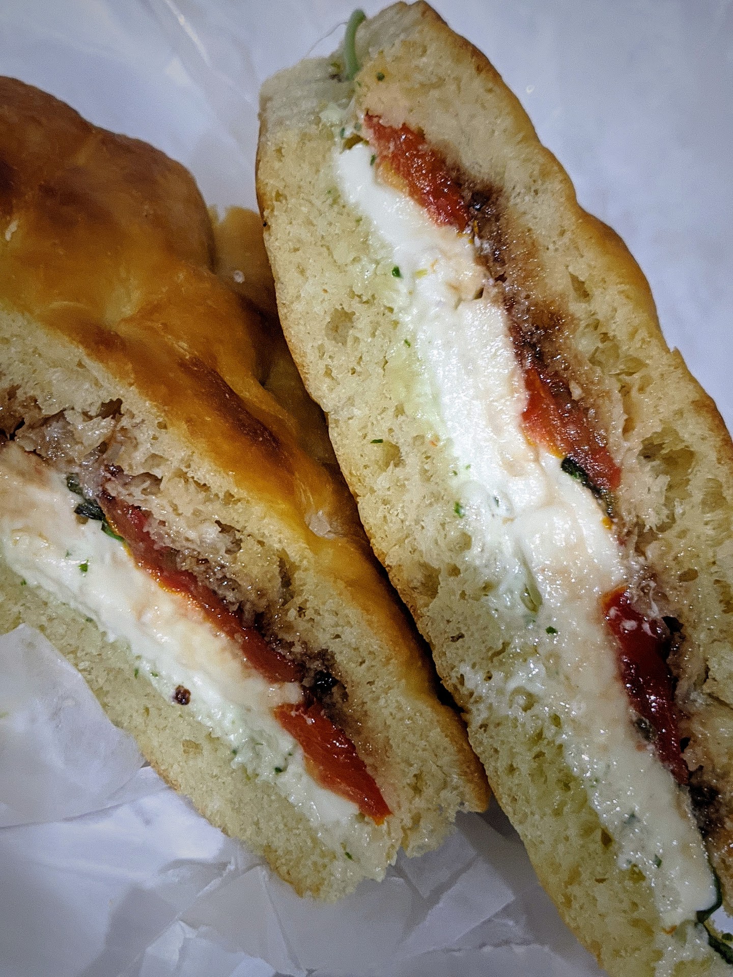 Start with that hearty house-made focaccia. It's not the bready, mass-produced stuff you've had before. This is the real deal, made with cornmeal and good-quality olive oil. It's a substantial base for Italian sausage or porketta, the two meats we've tried, both delicious.