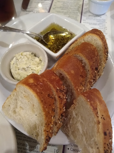 We had no wait. We were there late afternoon. We were waited on immediately. The server offered many good suggestions. I was craving garlic and ordered the roasted garlic soup combined with the tomato soup (recommended by our server). And it was delicious! The bread was tasty and fresh. We asked for a second round. My "build your own" pasta with spicy Italian sausage and creamy pesto satisfied every one of my food cravings. It was seriously one of the most delicious pasta dishes I've ever had. My husband was very happy with his Fettuccine Alfredo. It's the first time in a LONG time I finished an entire meal on my own.