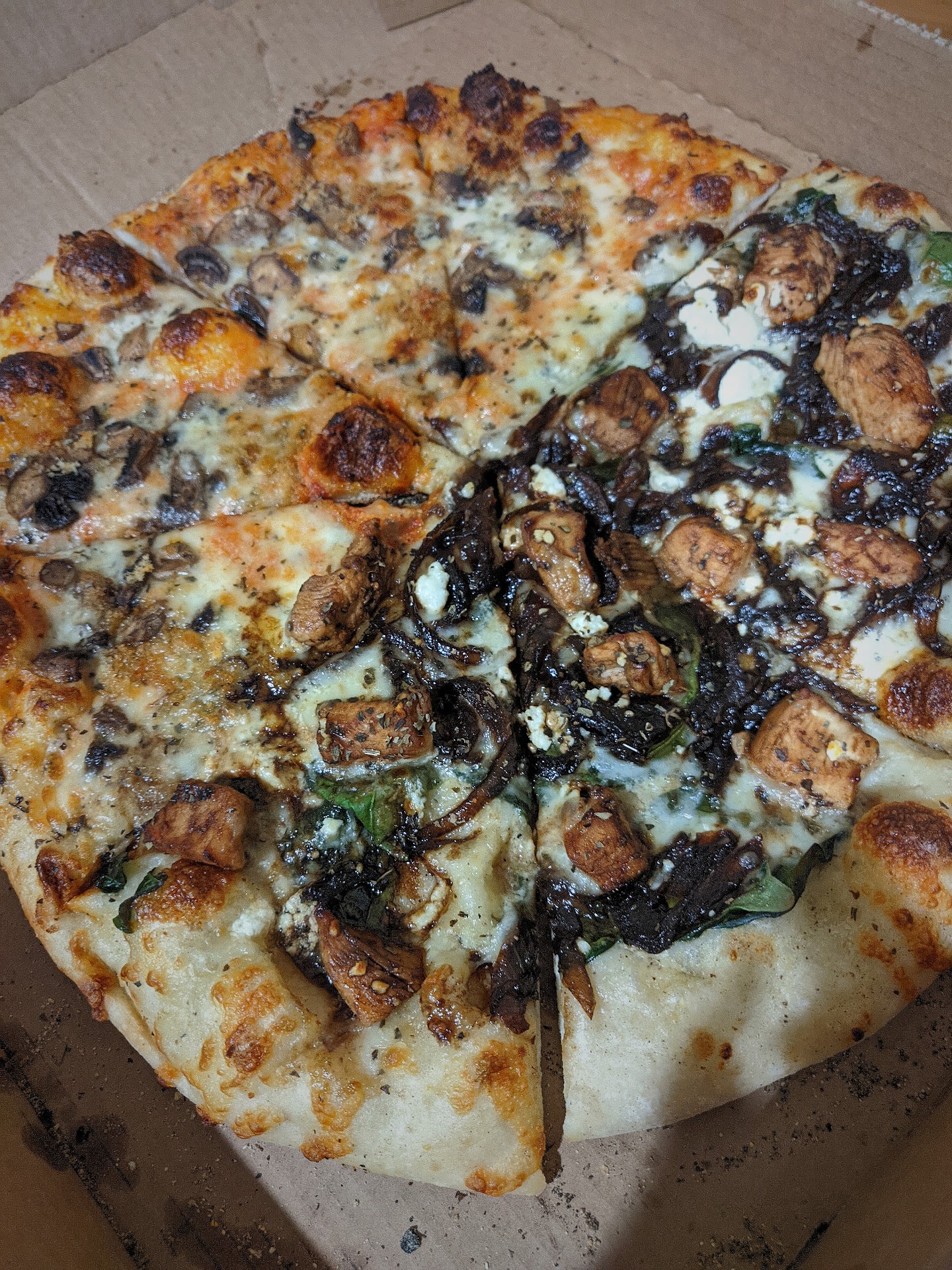 I prepared the frozen chicken parmesan at home. I thought the flavor was delicious, the crust was amazing & buttery, and everything was good. My wife doesn't like the marinara sauce but I thought it was fine. Therefore, I believe the quality of the pizza I ate at Manolo's was just really poor due to the pizza not...