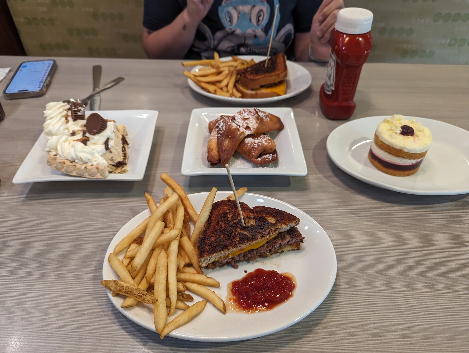 My friends and I arrived around 10 PM, as we usually do a little after 9. Upon being seated, our waitress informed us they were out of Chocolate French Silk—understandable, as pies do run out. But after we and everyone else in the restaurant had already placed our orders for food, she suddenly announced that Free Pie Monday had ended at 9 PM and would not be honored.