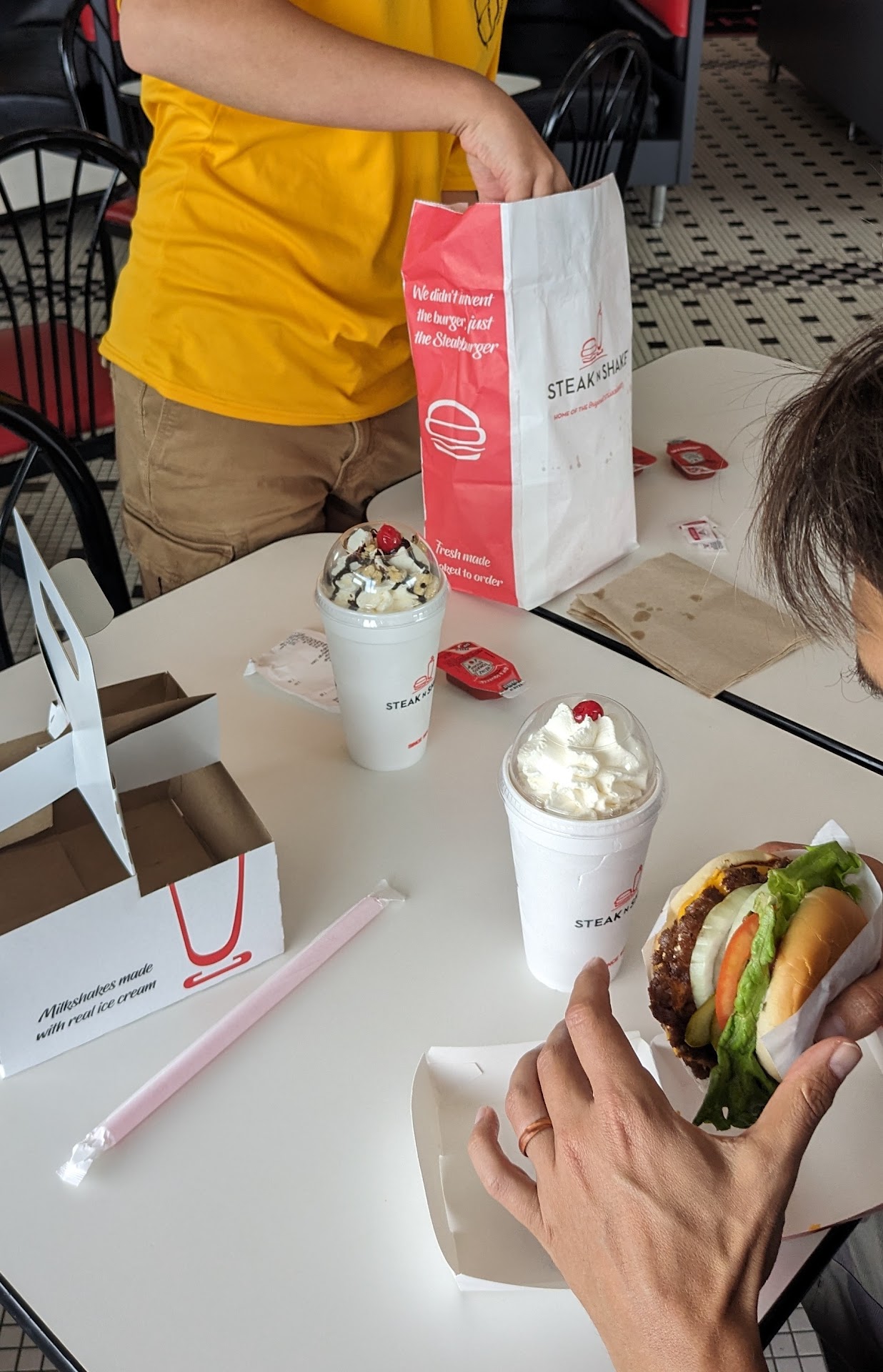 Now to ordering our food and drinks. One of us ordered a drink in a to-go cup, for we were on the road, and it was a convenient option for both server named Hayven, and us. We were mid order and she started writing our order on her hand! Like seriously, her hand? Did they run out of notebooks or something? We finished the order, waited while about 5 other servers moved our tray over to get to theirs. Them moving it was approximately 45 minutes of waiting, heck our server Hayven moved it 3 times! Then she proceeded to not pick it up, and messed around with miscellaneous tasks, and moved someone's cleaning supplies 2 times. Then a table that came after us got their wrong order due to Hayven, and got up and left. When we finally got our food, it was cold and 2 orders were missing, and another was wrong. A Jamaican Jerk wasn't even the right burger, my milkshake was non existent for 20 minutes, until we confronted the manager who had strutted out from his hiding place in a purple tux. After a while he brought out the right burger, guess what it was - cold. He said it was written up wrong (due to Hayven writing it on her hand).