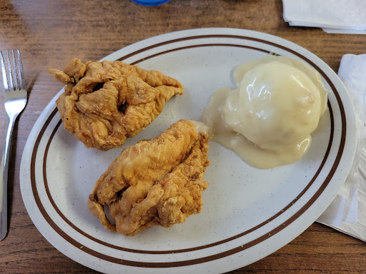 Read moreDO NOT WASTE YOUR MONEY HERE! Honestly don't know how this is 4.5 stars. Do not waste your money here. Food is god awful. I had a burger, the beef you could tell was probably nothing more than a frozen patty. I also had a chicken breast, by far the worst chicken breast I've ever had. It was extremely dry, and rubbery. I felt bad for my dog when I gave it to him, I could barely cut it with my knife. Also had chili fries, and the chili was tasteless and looked like wet dog food. And the cheese? It was disgusting. All stuck together, could lift it all off. I snuck a look into the kitchen in the back and saw a fridge with Kraft Cheese slices. 80 things on the menu but the kitchen is incredibly small and there's not many staff. Nobody communicated in the back which leads to believe everything is easily premade and frozen. They don't take cards, but have an ATM that charges a fee for taking out money. As well as the option to donate to a number of charities, honestly very sketchy. Feels like they're just after squeezing every penny they can out of you. Menu is full of pictures of the food to delude you into thinking the food is appetizing. Flies in the restaurant. Booths right next to a bathroom with the door left open left a horrible smell. Nothing here reminds you of good ole fashion country food. The only reason this restaurant stands is because it has no...
